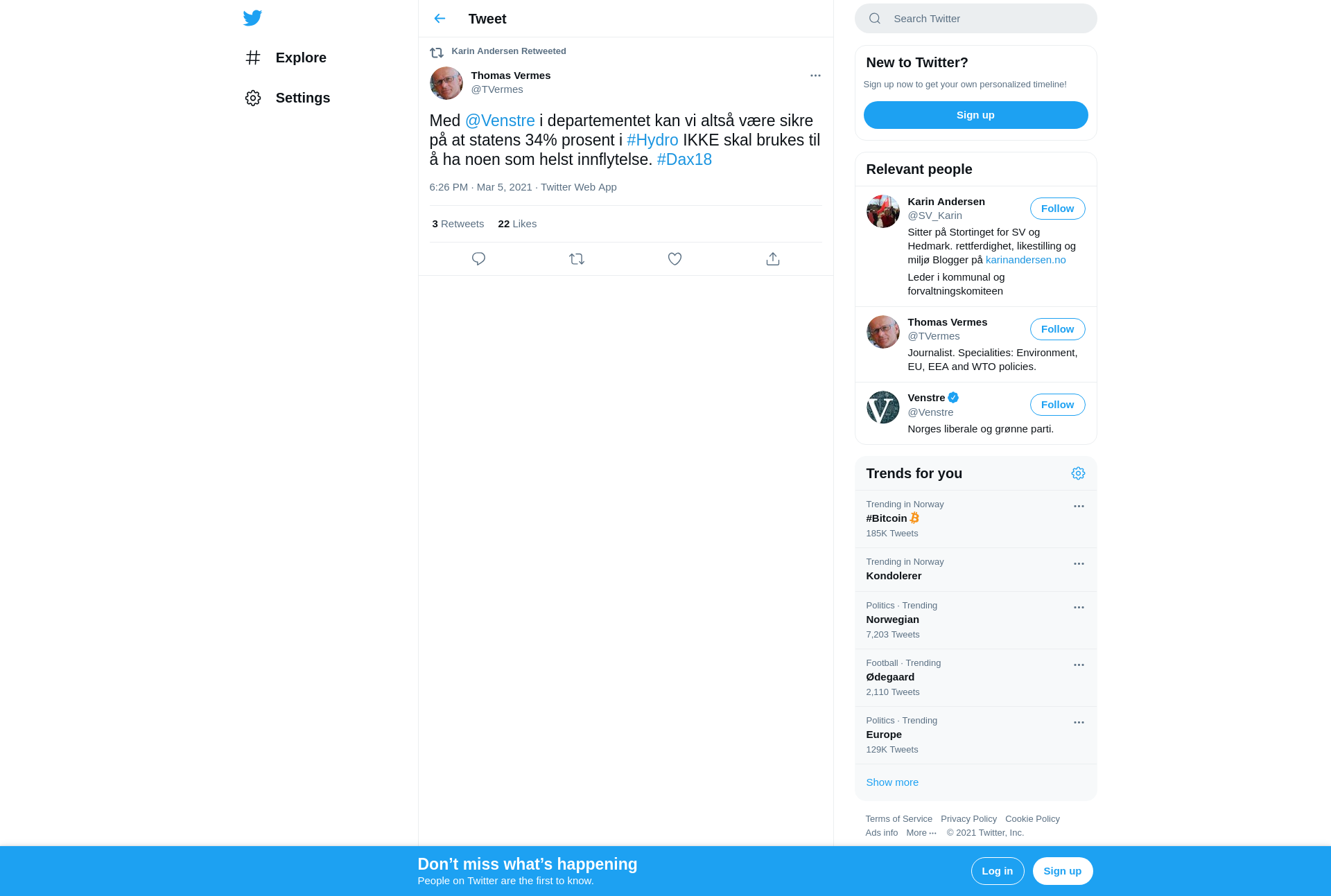 RT @TVermes: Med @Venstre i departementet kan vi altså være sikre på at statens 34% prosent i #Hydro IKKE skal brukes til å ha noen som helst innflytelse. #Dax18