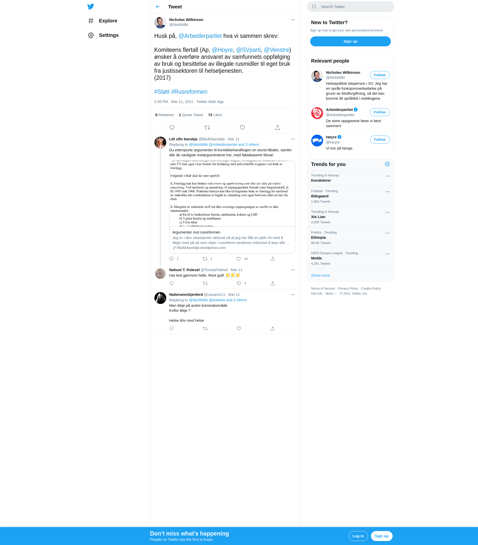 Komiteens flertall (Ap, @Hoyre, @SVparti, @Venstre) ønsker å overføre ansvaret av samfunnets oppfølging av bruk og besittelse av illegale rusmidler til eget bruk fra justissektoren til helsetjenesten.