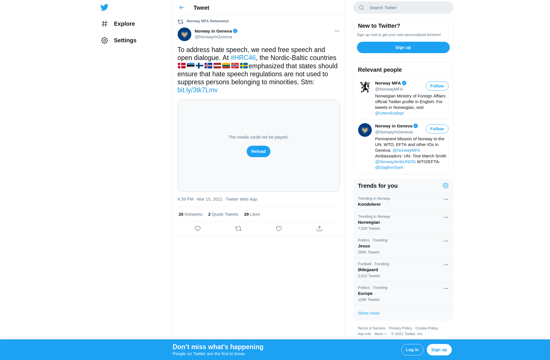 RT @NorwayInGeneva: To address hate speech, we need free speech and open dialogue. At #HRC46, the Nordic-Baltic countries 🇩🇰🇪🇪🇫🇮🇮🇸🇱🇻🇱🇹🇳🇴🇸🇪emphasized that states should ensure that hate speech regulations are not used to suppress persons belonging to minorities. Stm: https://t.co/SCmrdzCFd6 https://t.co/0Ht5yAyufS
