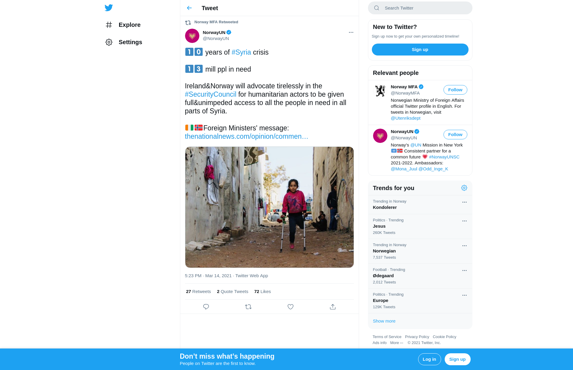 RT @NorwayUN: 1⃣0⃣ years of #Syria crisis 1⃣3⃣ mill ppl in need Ireland&Norway will advocate tirelessly in the #SecurityCouncil for human…