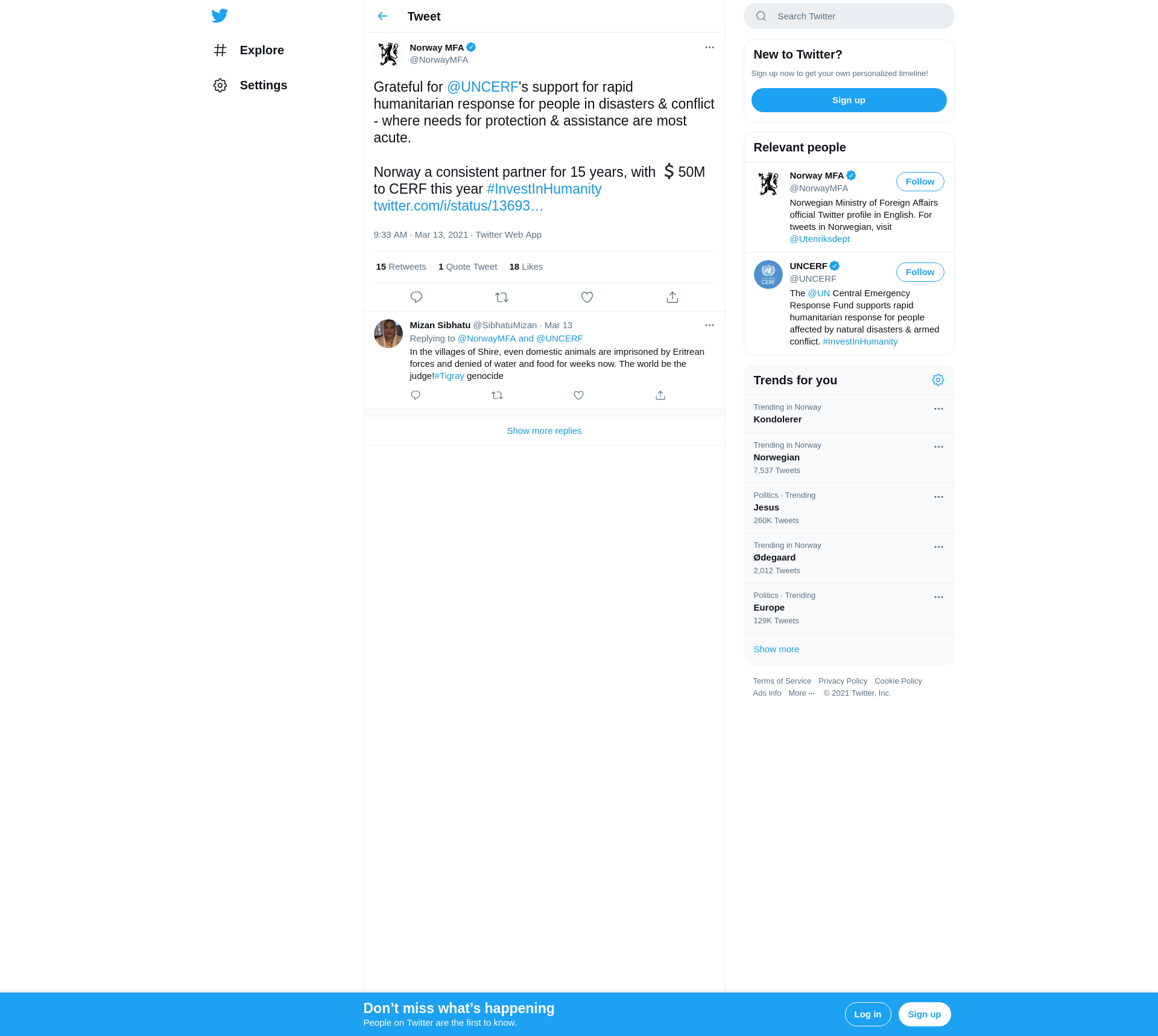 Norway a consistent partner for 15 years, with 💲50M to CERF this year #InvestInHumanity