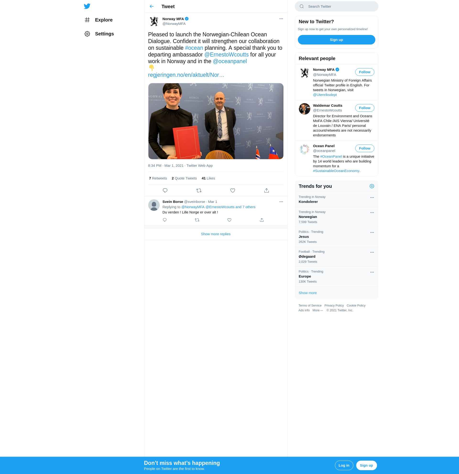 Chile is the third country with which Norway has established a formal ocean dialogue. ‘The MoU on establishing an ocean dialogue is not only a sign of our close bilateral cooperation with Chile on the oceans, but also shows our shared international com...