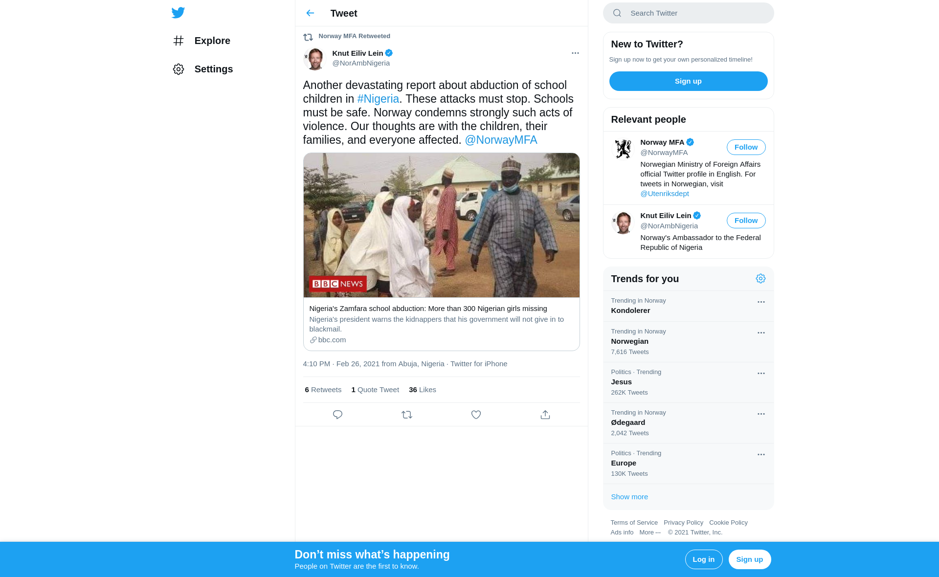 RT @NorAmbNigeria: Another devastating report about abduction of school children in #Nigeria. These attacks must stop. Schools must be safe. Norway condemns strongly such acts of violence. Our thoughts are with the children, their families, and everyone affected. @NorwayMFA https://t.co/1Ip3yhuumr