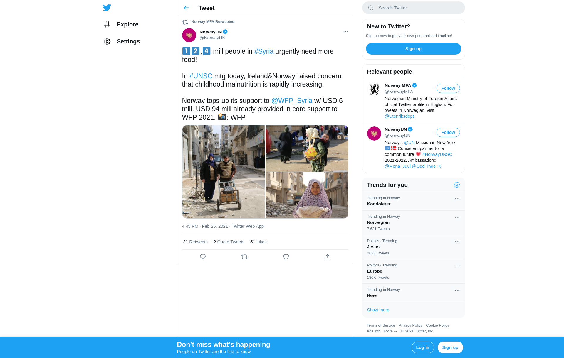 RT @NorwayUN: 1⃣2⃣,4⃣ mill people in #Syria urgently need more food! In #UNSC mtg today, Ireland&Norway raised concern that childhood maln…