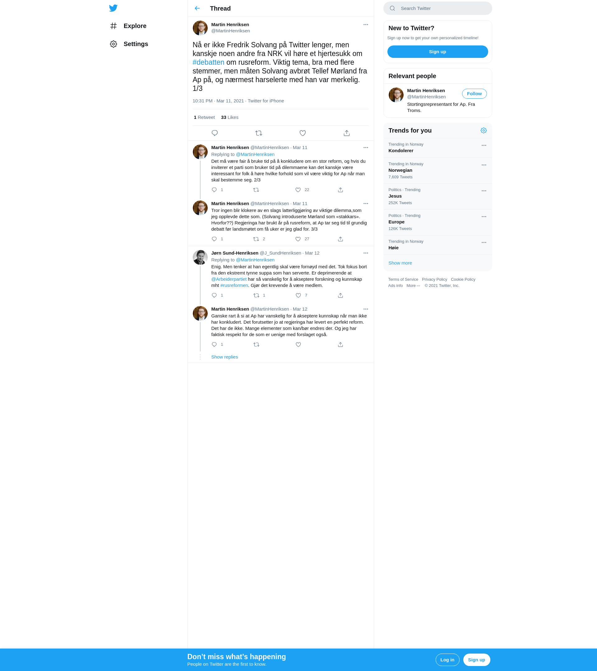 Nå er ikke Fredrik Solvang på Twitter lenger, men kanskje noen andre fra NRK vil høre et hjertesukk om #debatten om rusreform. Viktig tema, bra med flere stemmer, men måten Solvang avbrøt Tellef Mørland fra Ap på, og nærmest harselerte med han var merkelig. 1/3