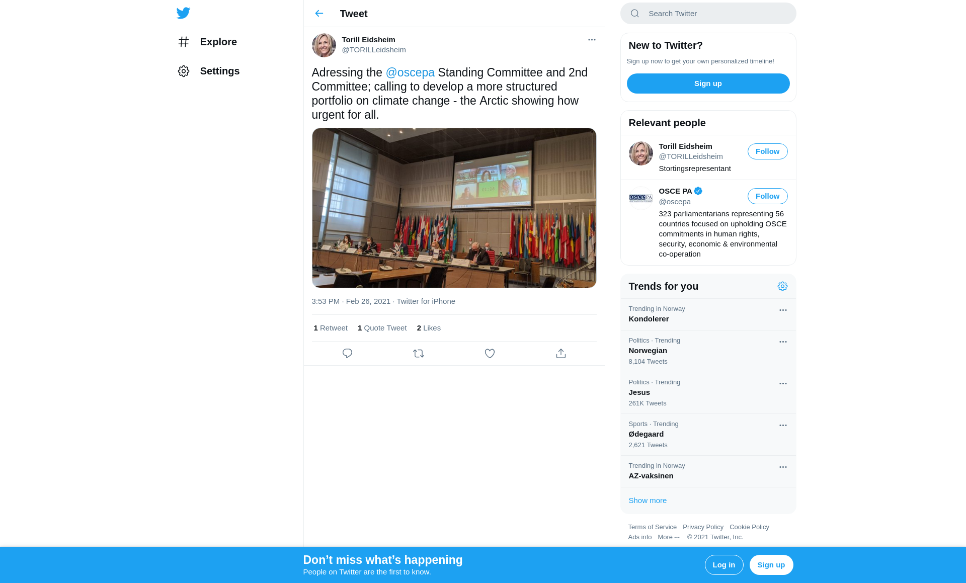 Adressing the @oscepa Standing Committee and 2nd Committee; calling to develop a more structured portfolio on climate change - the Arctic showing how urgent for all. https://t.co/RAnXxgcSxD