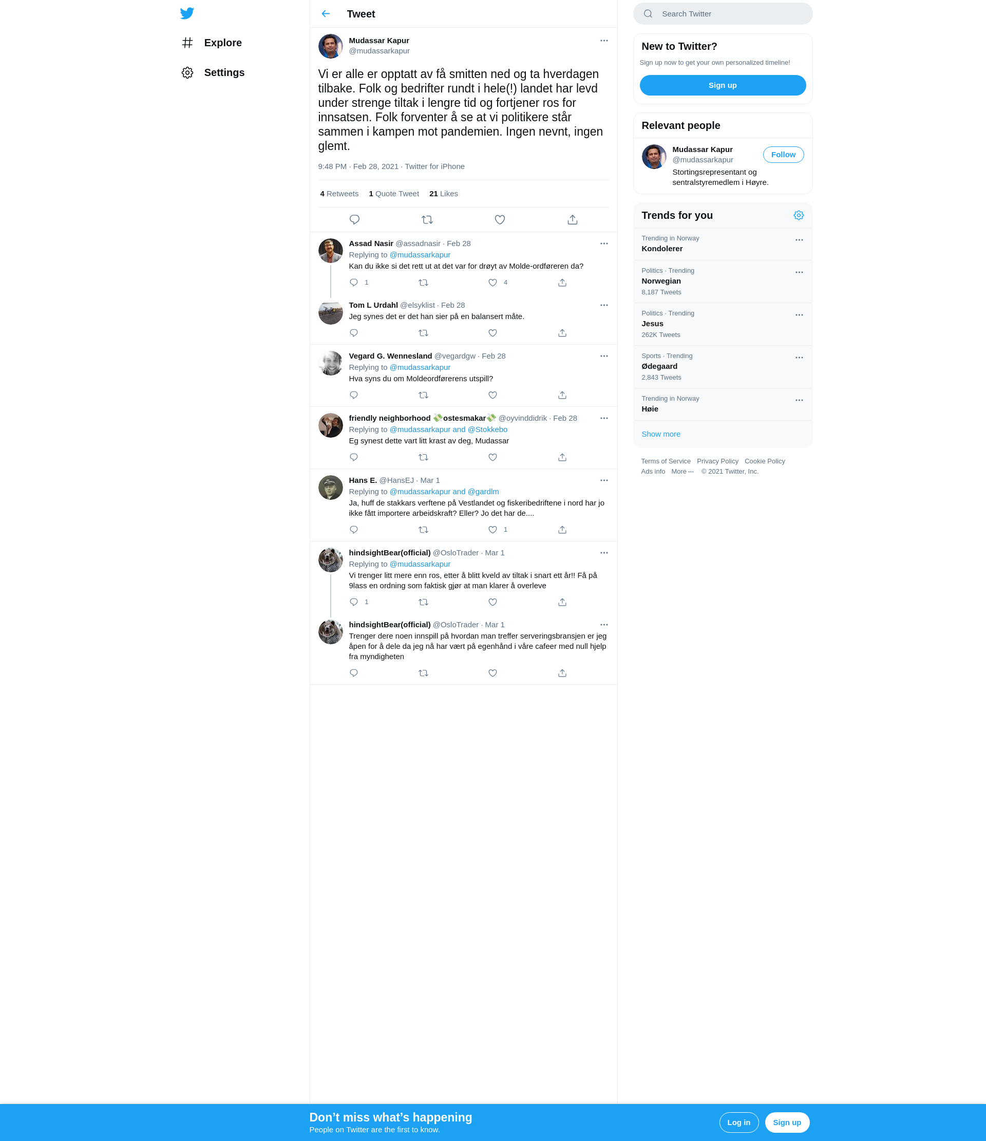 Vi er alle er opptatt av få smitten ned og ta hverdagen tilbake. Folk og bedrifter rundt i hele(!) landet har levd under strenge tiltak i lengre tid og fortjener ros for innsatsen. Folk forventer å se at vi politikere står sammen i kampen mot pandemien. Ingen nevnt, ingen glemt.