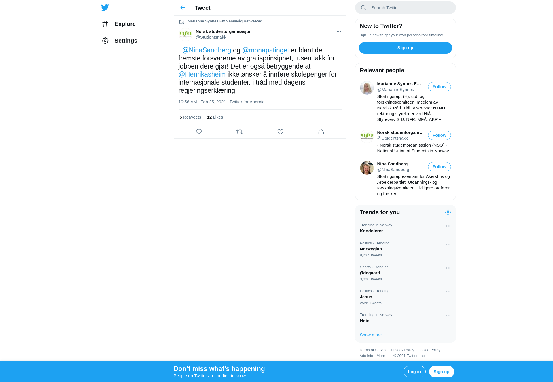 RT @Studentsnakk: . @NinaSandberg og @monapatinget er blant de fremste forsvarerne av gratisprinsippet, tusen takk for jobben dere gjør! Det er også betryggende at @Henrikasheim ikke ønsker å innføre skolepenger for internasjonale studenter, i tråd med dagens regjeringserklæring.