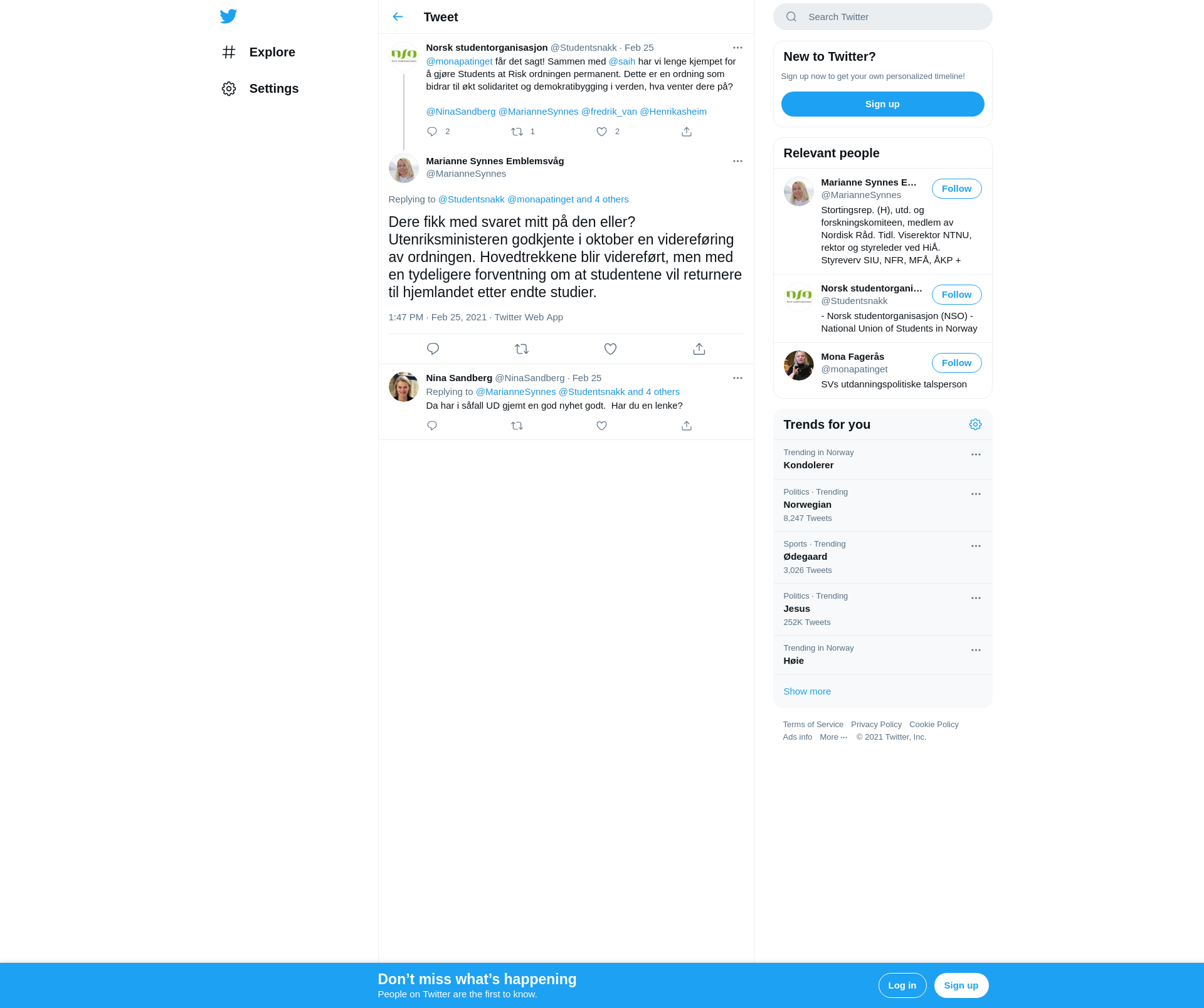 @Studentsnakk @monapatinget @saih @NinaSandberg @fredrik_van @Henrikasheim Dere fikk med svaret mitt på den eller? Utenriksministeren godkjente i oktober en videreføring av ordningen. Hovedtrekkene blir videreført, men med en tydeligere forventning om at studentene vil returnere til hjemlandet etter endte studier.