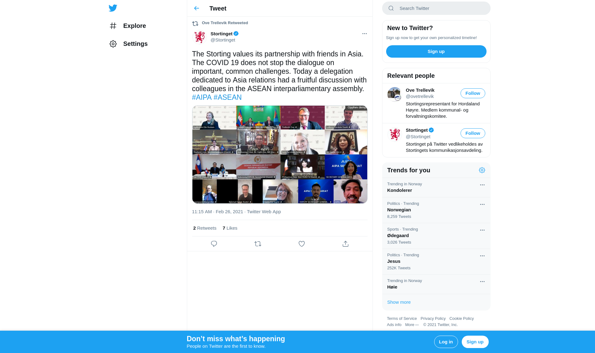 RT @Stortinget: The Storting values its partnership with friends in Asia. The COVID 19 does not stop the dialogue on important, common challenges. Today a delegation dedicated to Asia relations had a fruitful discussion with colleagues in the ASEAN interparliamentary assembly. #AIPA #ASEAN https://t.co/eQfJ9fDwO6