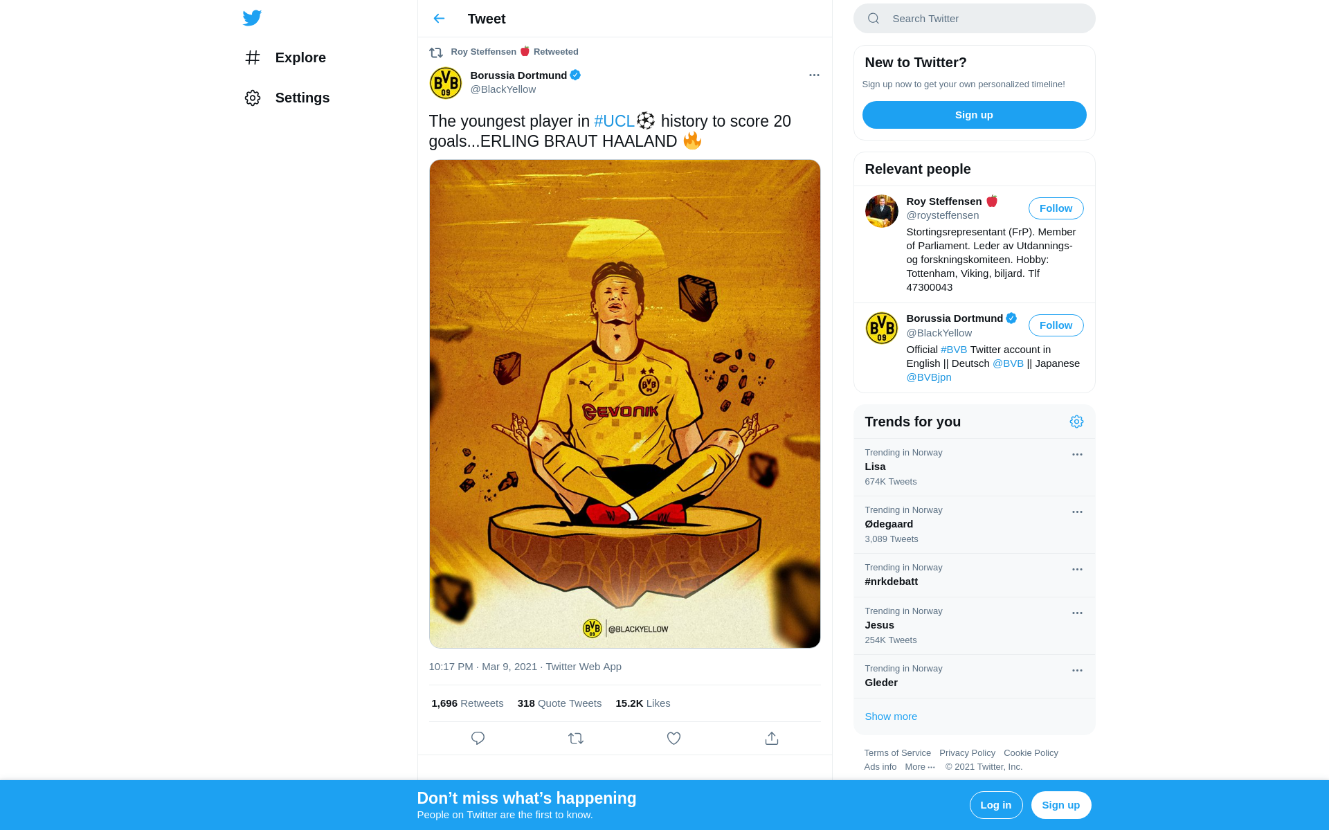 RT @BlackYellow: The youngest player in #UCL history to score 20 goals...ERLING BRAUT HAALAND 🔥 https://t.co/JQeoyyLcy1