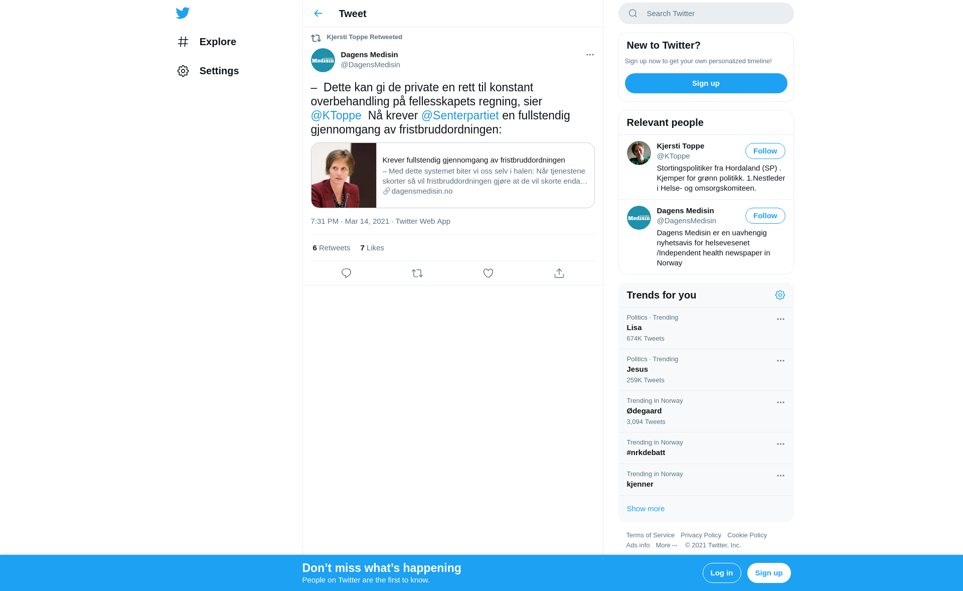 RT @DagensMedisin: – Dette kan gi de private en rett til konstant overbehandling på fellesskapets regning, sier @KToppe Nå krever @Senterpartiet en fullstendig gjennomgang av fristbruddordningen: https://t.co/AxNJqGgRqA
