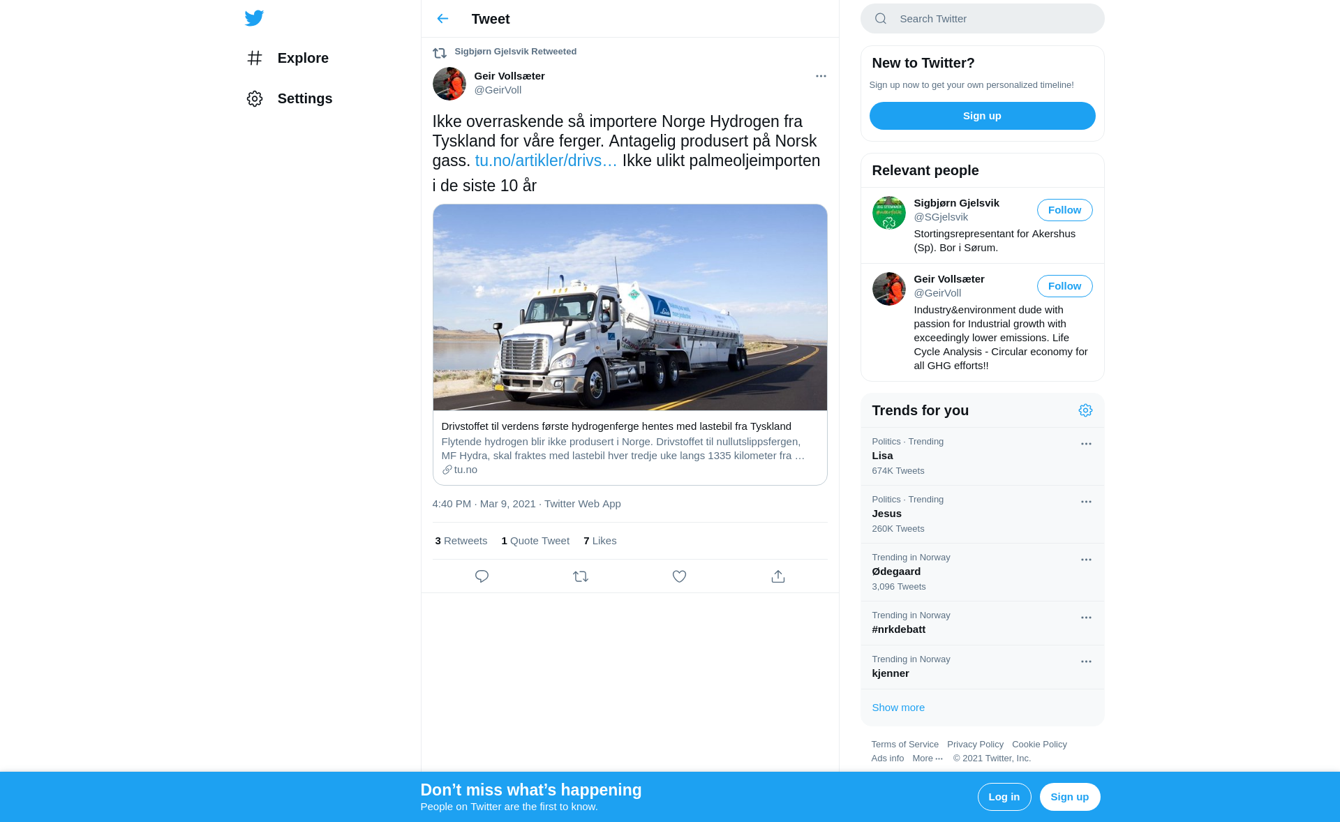 RT @GeirVoll: Ikke overraskende så importere Norge Hydrogen fra Tyskland for våre ferger. Antagelig produsert på Norsk gass. https://t.co/vLUiiiKqzp Ikke ulikt palmeoljeimporten i de siste 10 år
