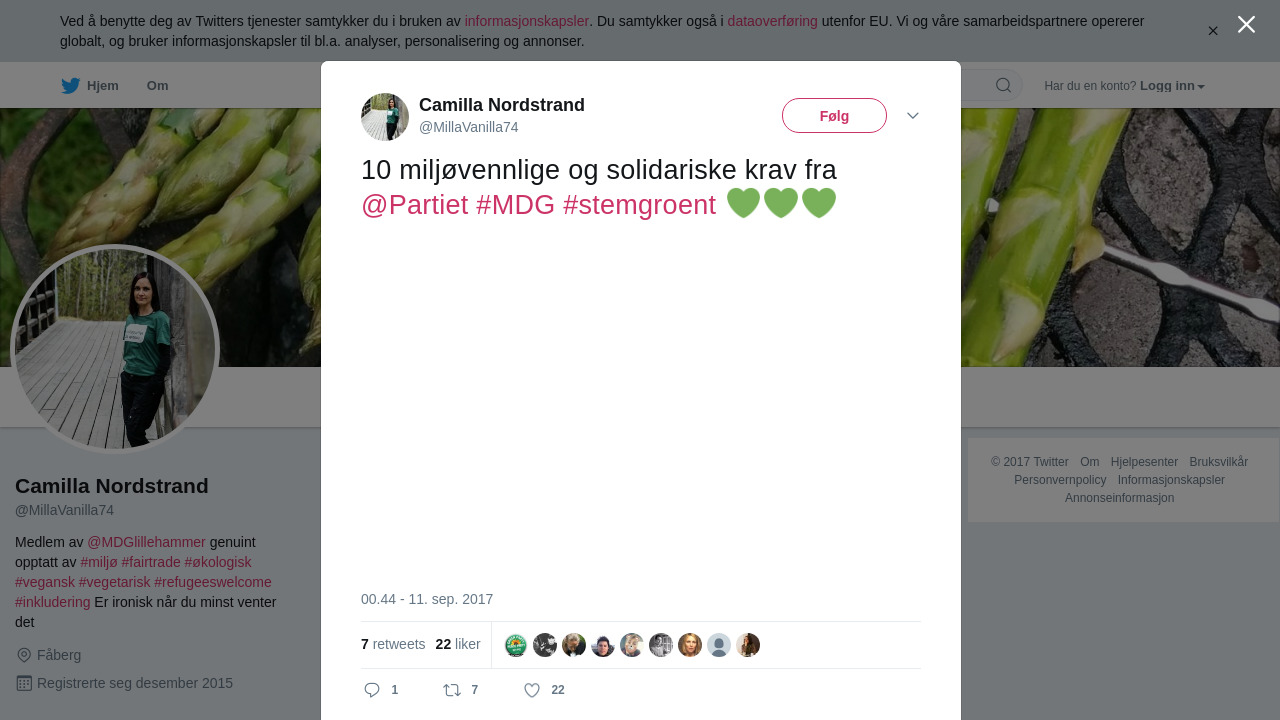 RT @MillaVanilla74: 10 miljøvennlige og solidariske krav fra @Partiet #MDG #stemgroent 💚💚💚 https://t.co/dkyweJ1zS7