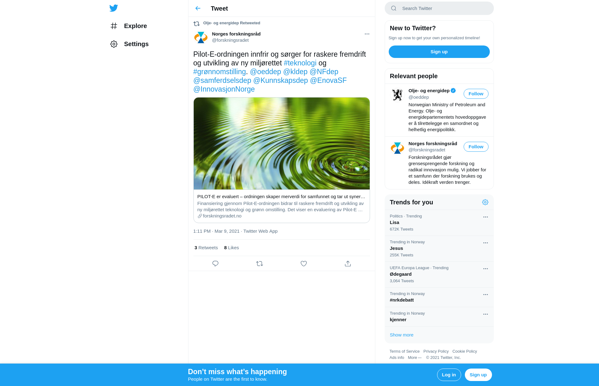 RT @forskningsradet: Pilot-E-ordningen innfrir og sørger for raskere fremdrift og utvikling av ny miljørettet #teknologi og #grønnomstilling. @oeddep @kldep @NFdep @samferdselsdep @Kunnskapsdep @EnovaSF @InnovasjonNorge