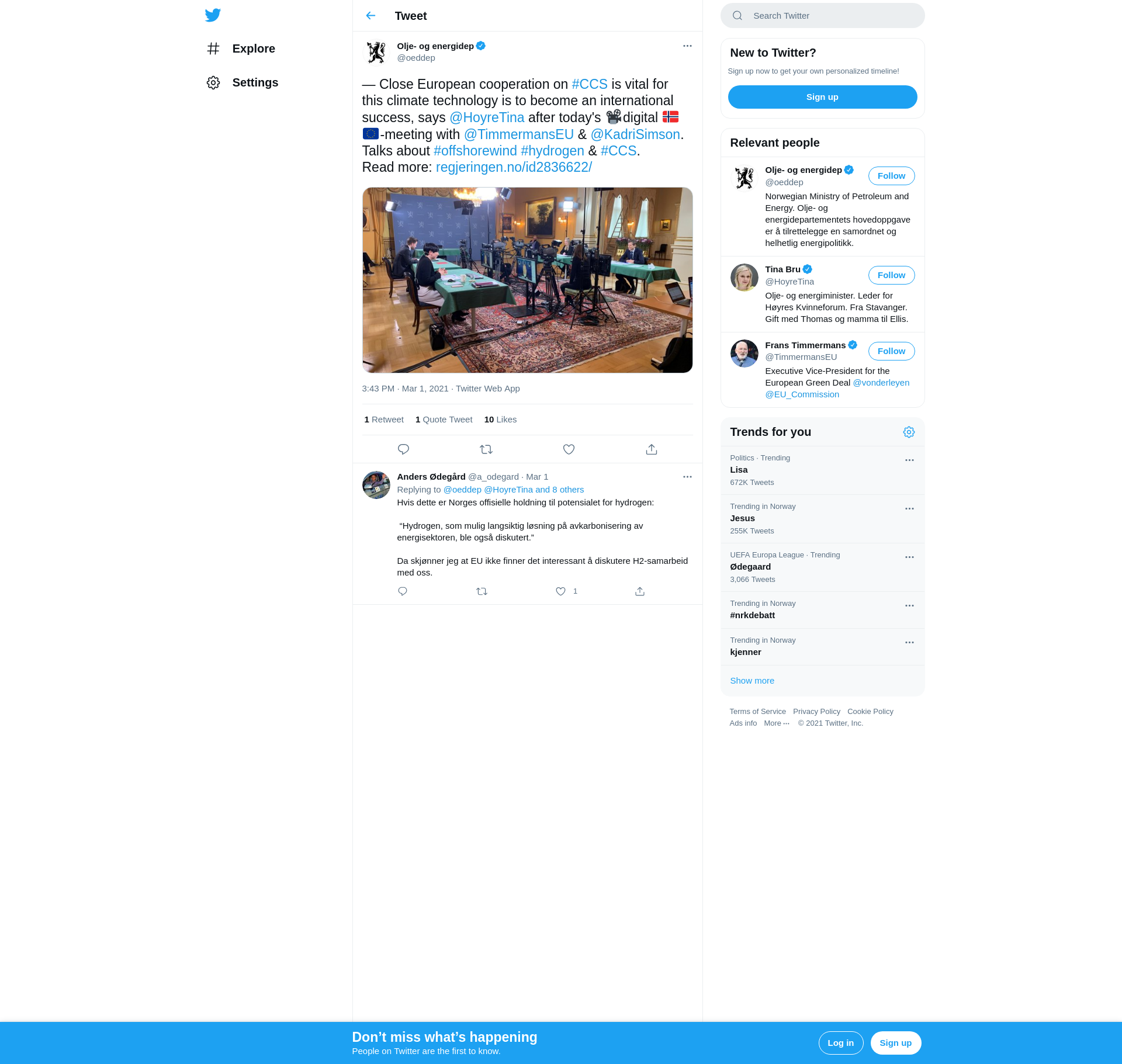 Norge har teknologi og kunnskap som er viktig for Europas grønne omstilling. Et møte mellom norske ministre og EU-kommissærer i dag, markerte at Norge og EU er enige om å styrke samarbeidet om hvordan vi kan sikre overgangen til en moderne og konkurran...