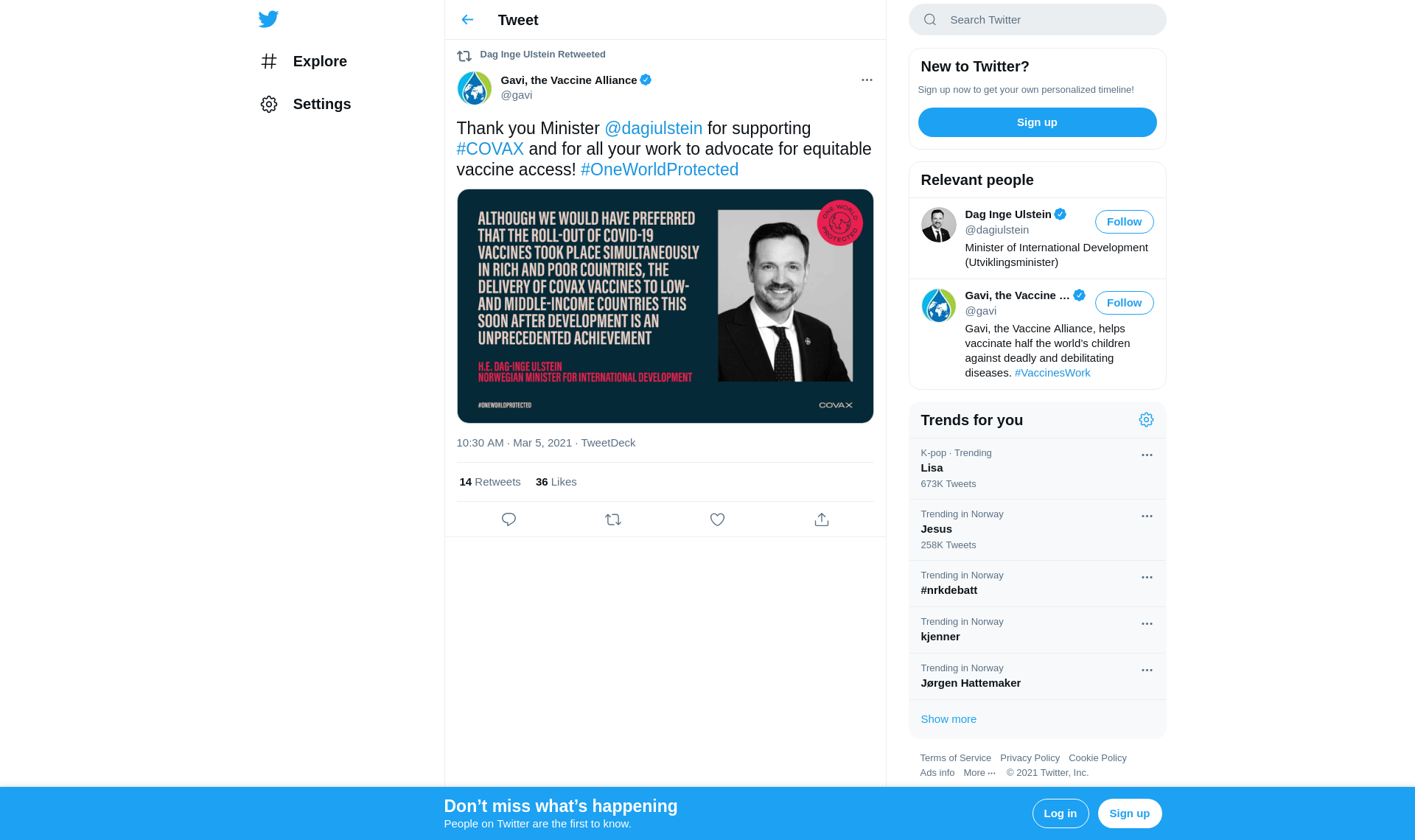 RT @gavi: Thank you Minister @dagiulstein for supporting #COVAX and for all your work to advocate for equitable vaccine access! #OneWorldProtected https://t.co/8F8wU7A4mr