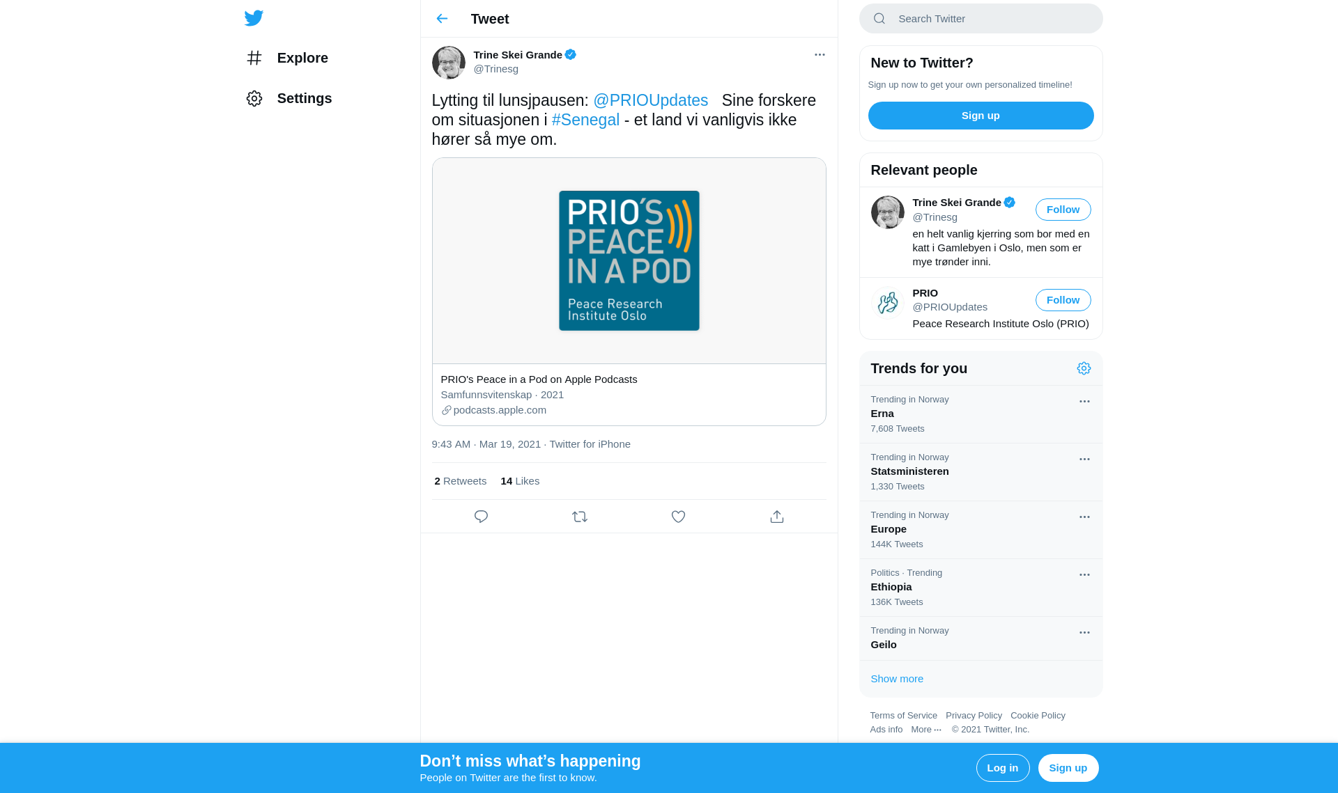 Lytting til lunsjpausen: @PRIOUpdates Sine forskere om situasjonen i #Senegal - et land vi vanligvis ikke hører så mye om. https://t.co/hYEnp8DhOe