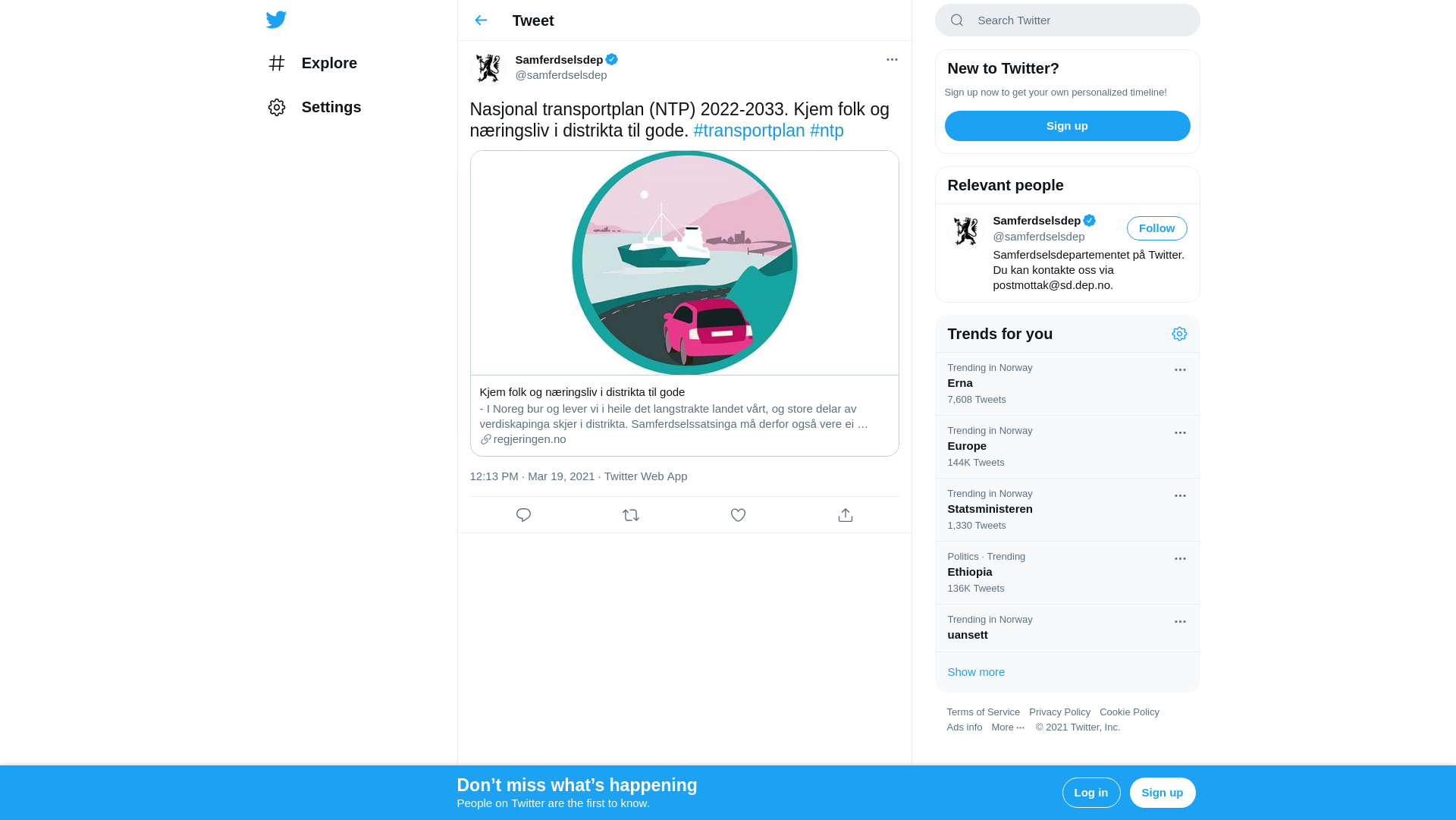 - I Noreg bur og lever vi i heile det langstrakte landet vårt, og store delar av verdiskapinga skjer i distrikta. Samferdselssatsinga må derfor også vere ei distriktssatsing. Det sikrar vi i den transportplanen regjeringa no legg fram, seier samferdsel...