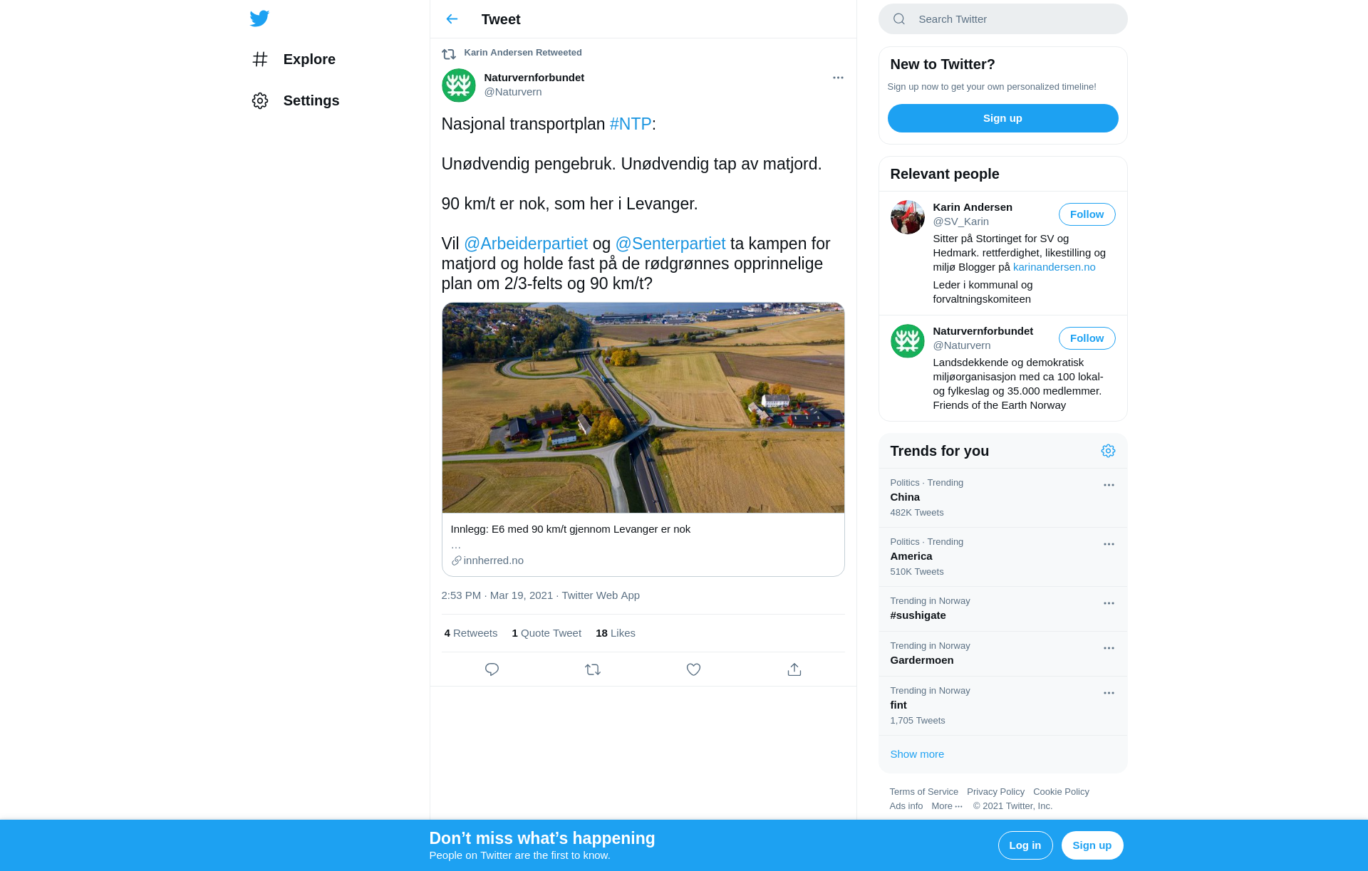 RT @Naturvern: Nasjonal transportplan #NTP: Unødvendig pengebruk. Unødvendig tap av matjord. 90 km/t er nok, som her i Levanger. Vil @A…