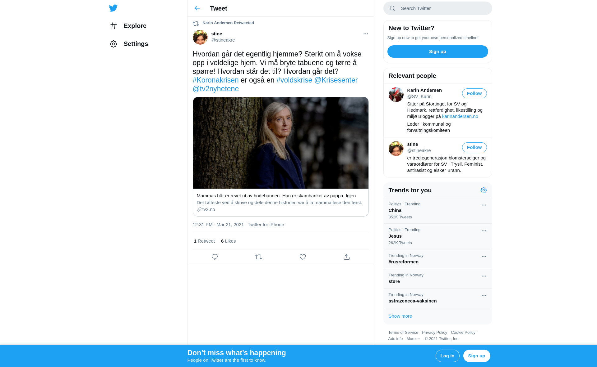 RT @stineakre: Hvordan går det egentlig hjemme? Sterkt om å vokse opp i voldelige hjem. Vi må bryte tabuene og tørre å spørre! Hvordan står det til? Hvordan går det? #Koronakrisen er også en #voldskrise @Krisesenter @tv2nyhetene https://t.co/TqfNMFfzuh