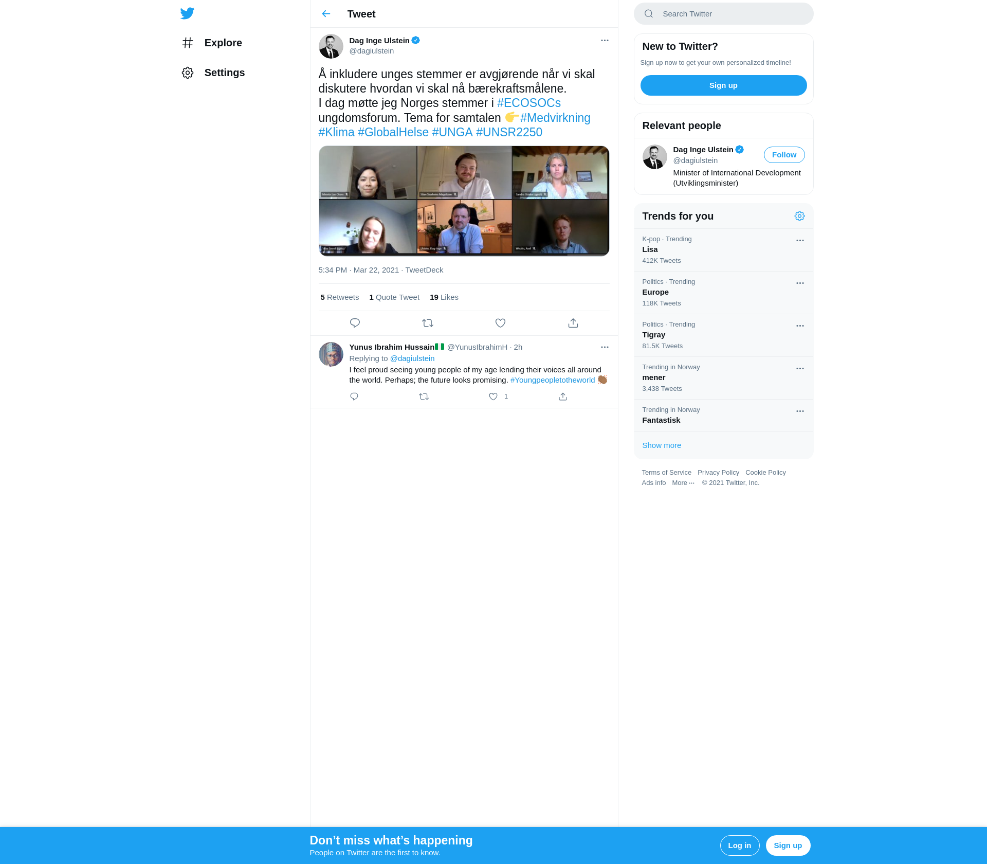 I dag møtte jeg Norges stemmer i #ECOSOCs ungdomsforum. Tema for samtalen 👉#Medvirkning #Klima #GlobalHelse #UNGA #UNSR2250 https://t.co/YYTbFuvCSp