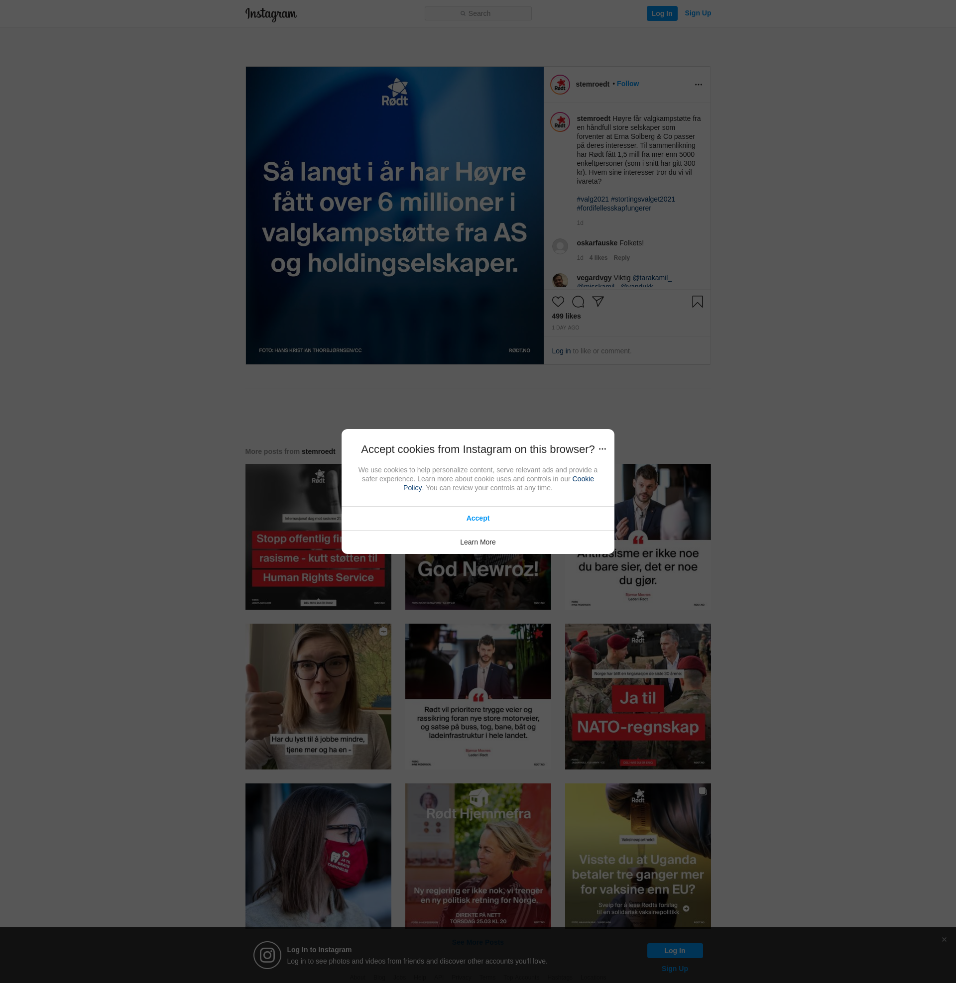 Høyre får valgkampstøtte fra en håndfull store selskaper som forventer at Erna Solberg & Co passer på deres interesser. Til sammenlikning har Rødt fått 1,5 mill fra mer enn 5000 enkeltpersoner (som i snitt har gitt 300 kr). Hvem sine interesser tror du vi vil ivareta?