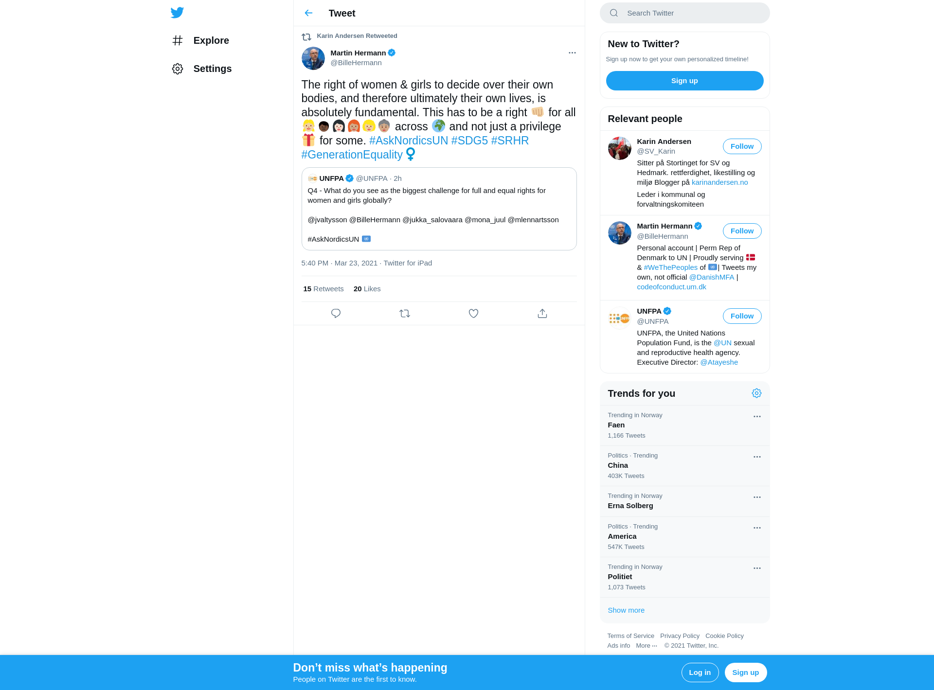 RT @BilleHermann: The right of women & girls to decide over their own bodies, and therefore ultimately their own lives, is absolutely fundamental. This has to be a right ππΌ for all π§πΌπ§πΏπ©π»π©π½βπ¦°π©πΌβπ¦±π΅π½ across π and not just a privilege π for some. #AskNordicsUN #SDG5 #SRHR #GenerationEquality