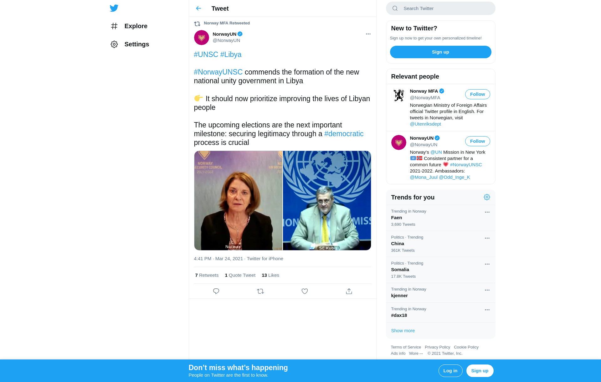 RT @NorwayUN: #UNSC #Libya #NorwayUNSC commends the formation of the new national unity government in Libya 👉 It should now prioritize im…