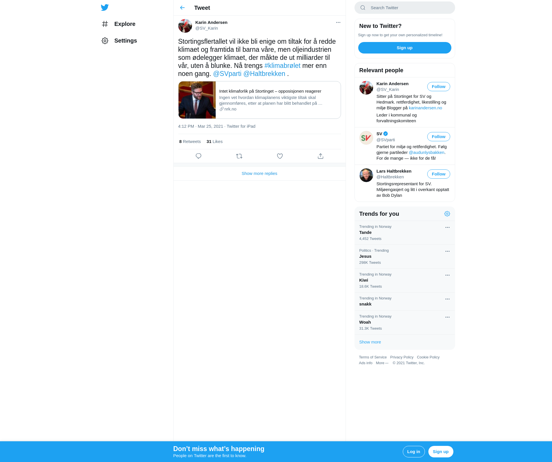 Stortingsflertallet vil ikke bli enige om tiltak for å redde klimaet og framtida til barna våre, men oljeindustrien som ødelegger klimaet, der måkte de ut milliarder til vår, uten å blunke. Nå trengs #klimabrølet mer enn noen gang. @SVparti @Haltbrekken . https://t.co/Dss6kGMwMp