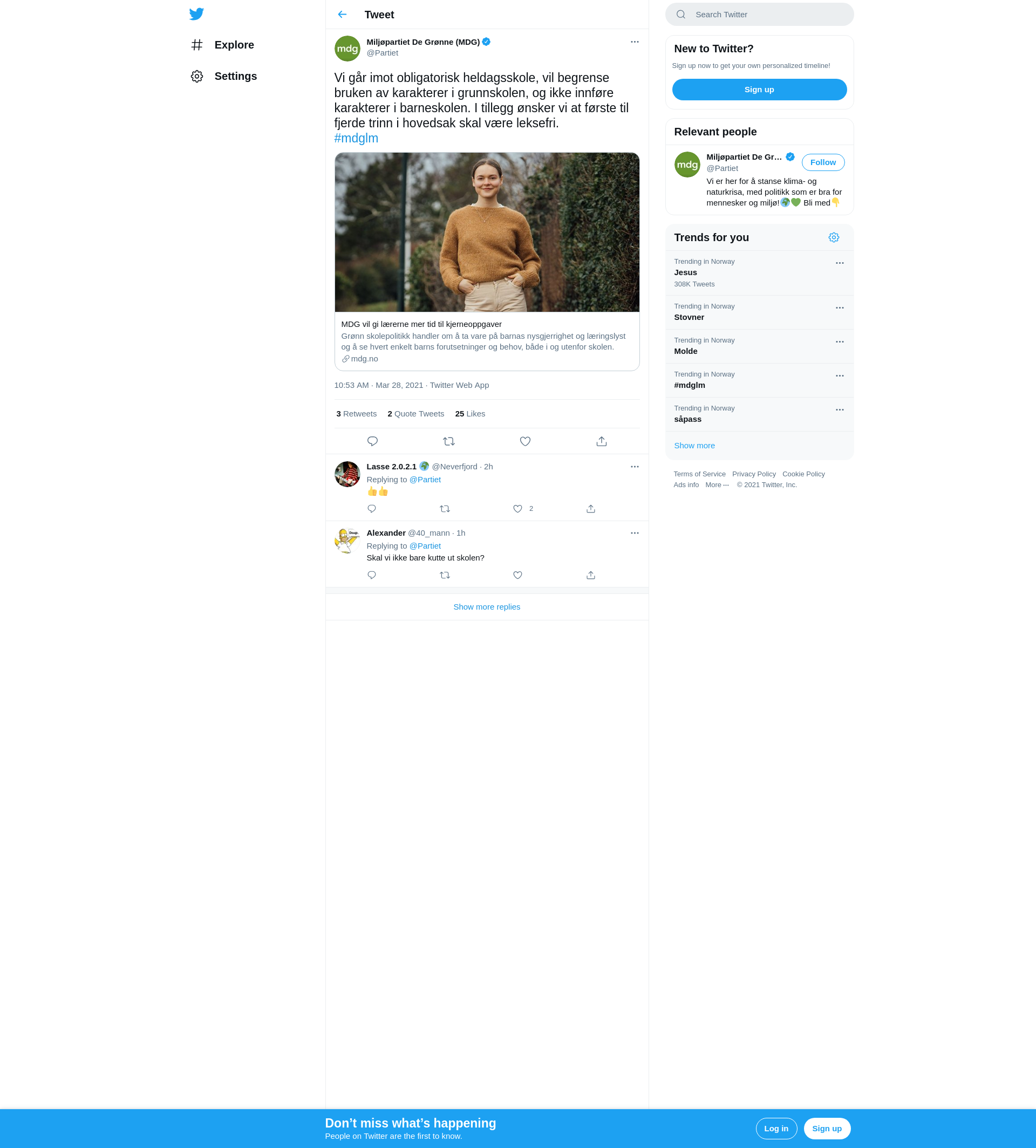 Vi går imot obligatorisk heldagsskole, vil begrense bruken av karakterer i grunnskolen, og ikke innføre karakterer i barneskolen. I tillegg ønsker vi at første til fjerde trinn i hovedsak skal være leksefri.