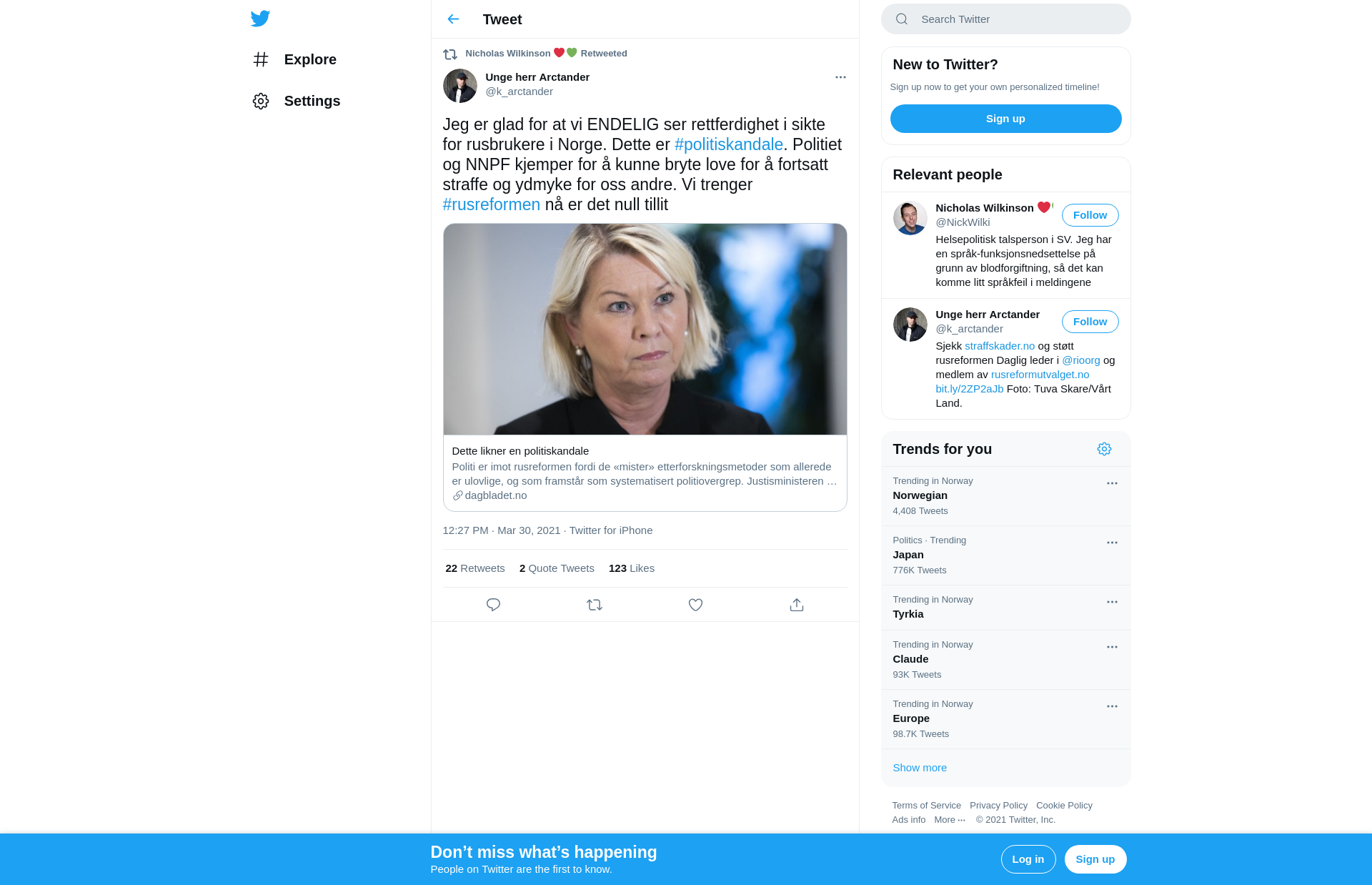 RT @k_arctander: Jeg er glad for at vi ENDELIG ser rettferdighet i sikte for rusbrukere i Norge. Dette er #politiskandale. Politiet og NNPF kjemper for å kunne bryte love for å fortsatt straffe og ydmyke for oss andre. Vi trenger #rusreformen nå er det null tillit