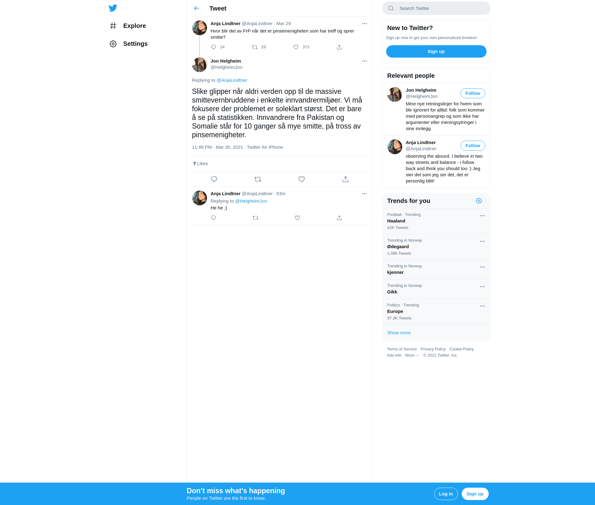 @AnjaLindtner Slike glipper når aldri verden opp til de massive smittevernbruddene i enkelte innvandrermiljøer. Vi må fokusere der problemet er soleklart størst. Det er bare å se på statistikken. Innvandrere fra Pakistan og Somalie står for 10 ganger så mye smitte, på tross av pinsemenigheter.