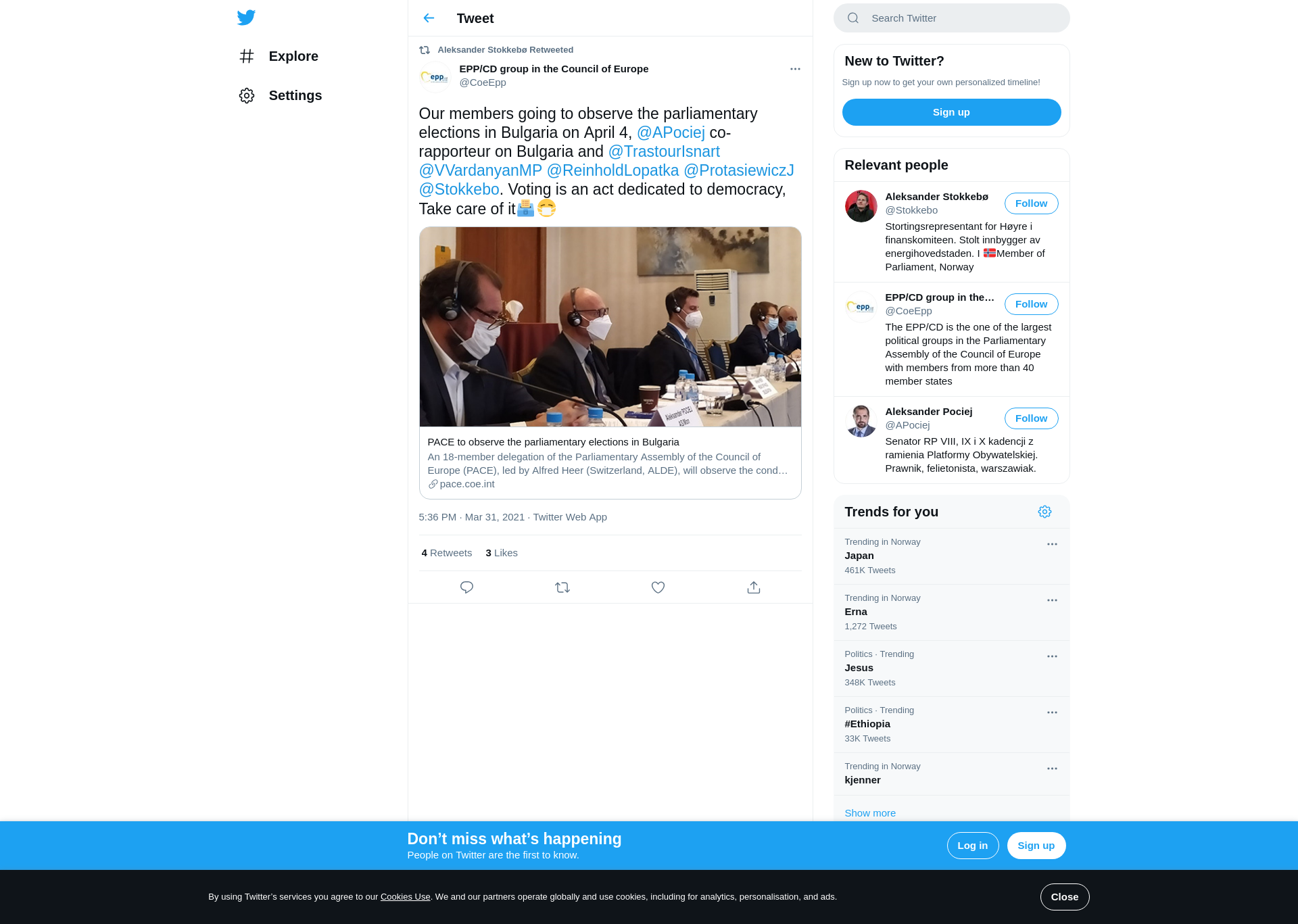 RT @CoeEpp: Our members going to observe the parliamentary elections in Bulgaria on April 4, @APociej co-rapporteur on Bulgaria and @TrastourIsnart @VVardanyanMP @ReinholdLopatka @ProtasiewiczJ @Stokkebo. Voting is an act dedicated to democracy, Take care of it🗳️😷 https://t.co/AzvUey92fJ