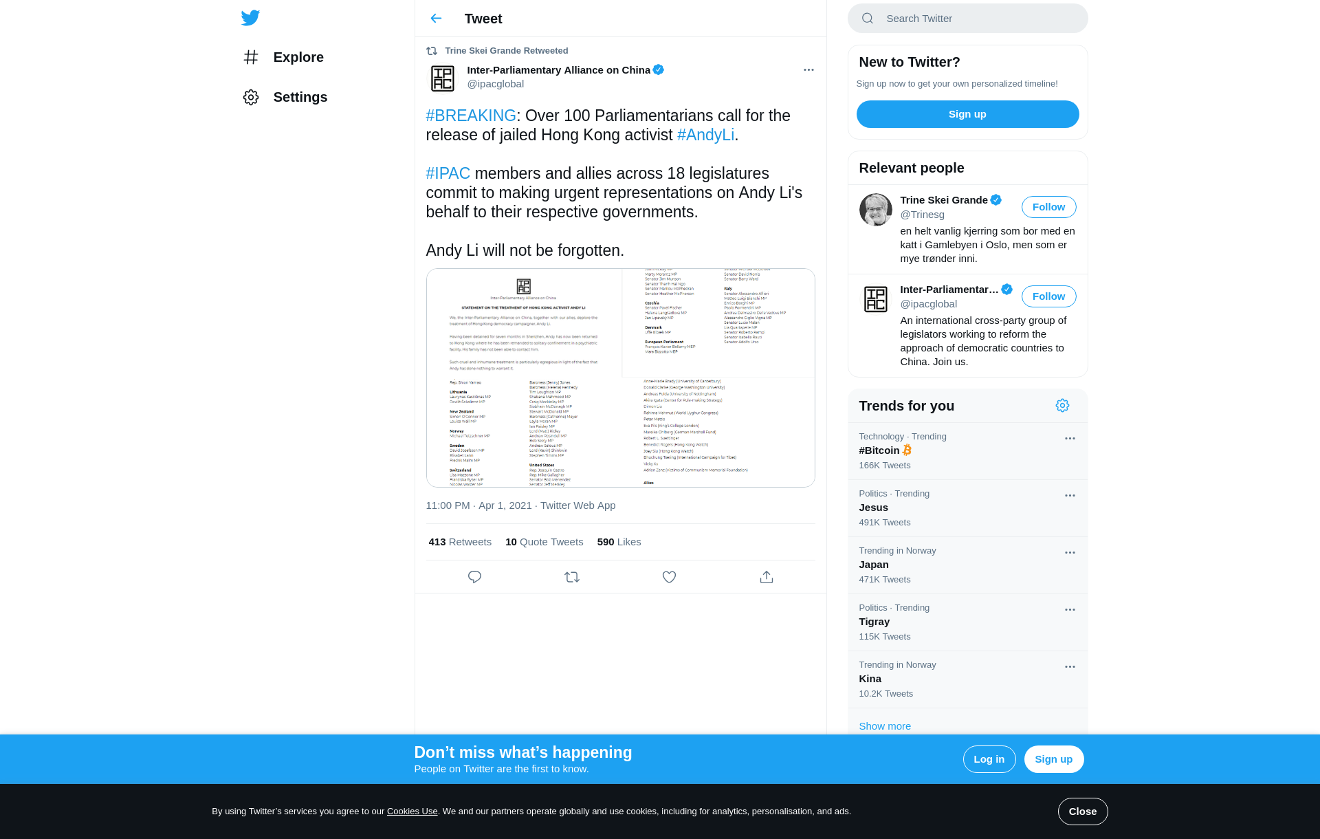 RT @ipacglobal: #BREAKING: Over 100 Parliamentarians call for the release of jailed Hong Kong activist #AndyLi. #IPAC members and allies a…