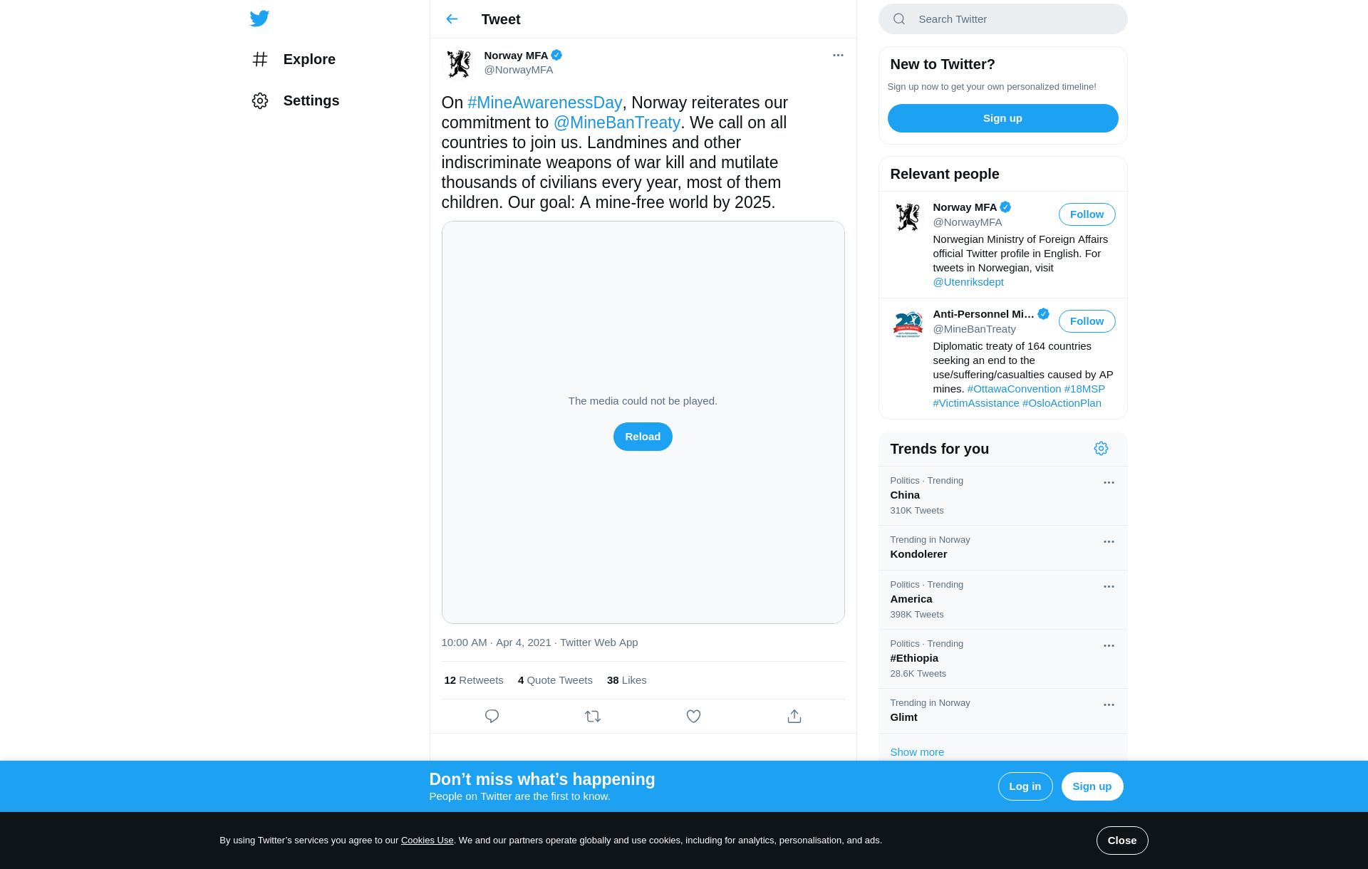 On #MineAwarenessDay, Norway reiterates our commitment to @MineBanTreaty. We call on all countries to join us. Landmines and other indiscriminate weapons of war kill and mutilate thousands of civilians every year, most of them children. Our goal: A mine-free world by 2025. https://t.co/NaU0Z8S04Z