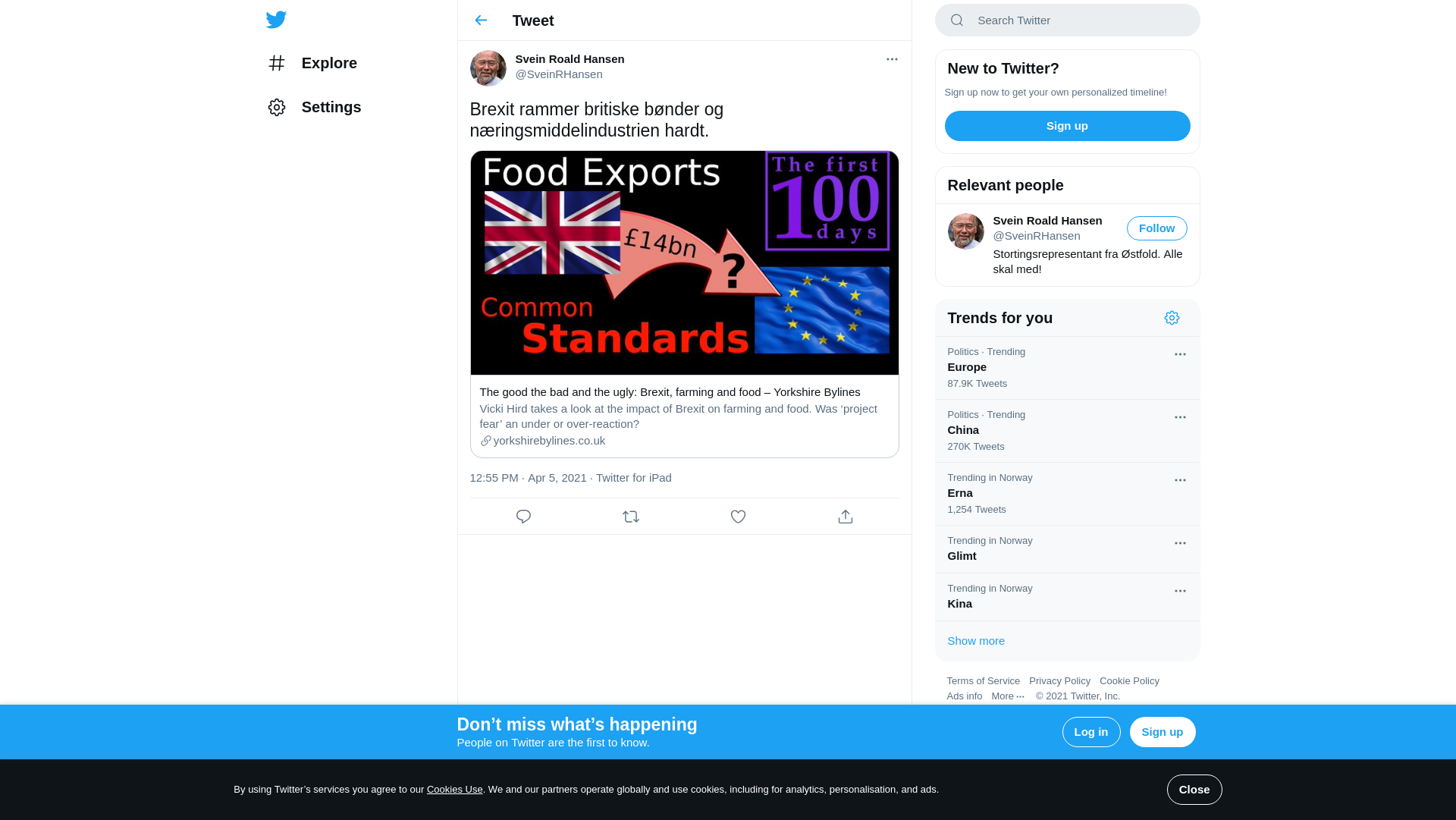 Brexit rammer britiske bønder og næringsmiddelindustrien hardt. https://t.co/xgm5U0MYYV