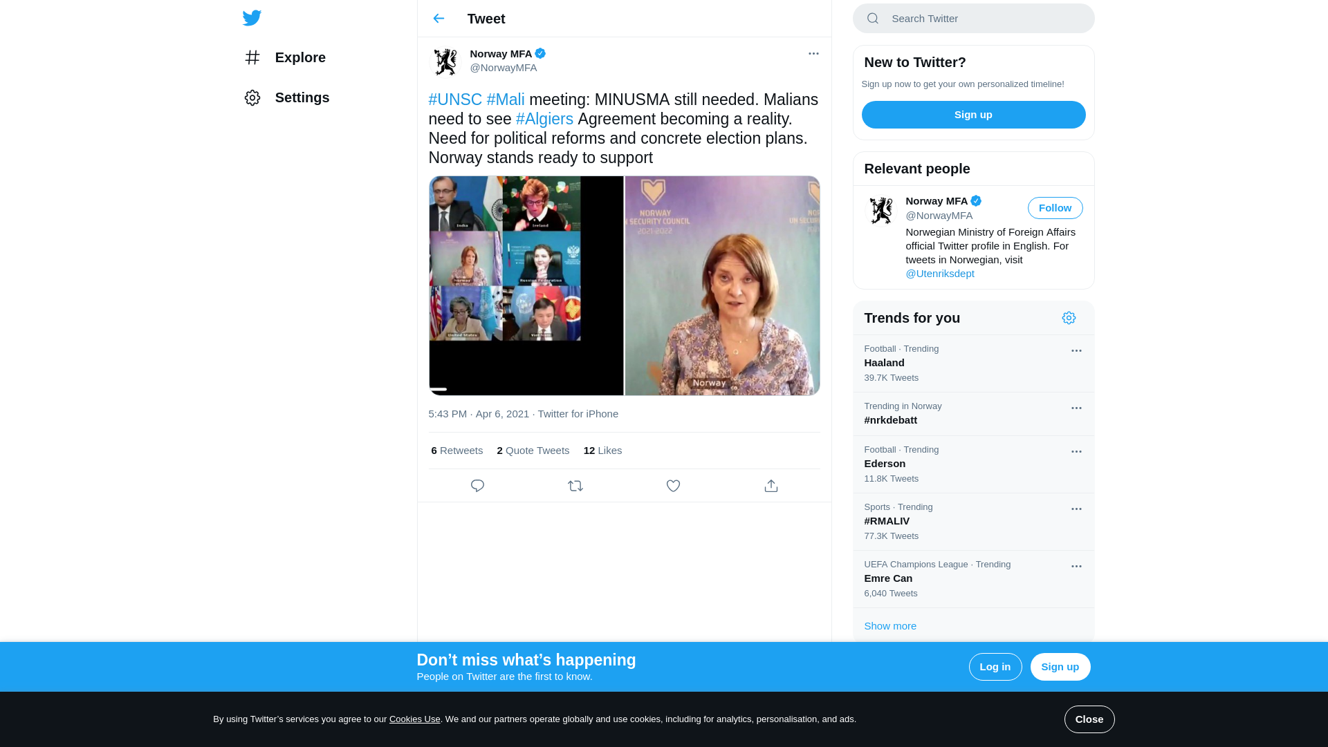 #UNSC #Mali meeting: MINUSMA still needed. Malians need to see #Algiers Agreement becoming a reality. Need for political reforms and concrete election plans. Norway stands ready to support https://t.co/NURmLh0yzL