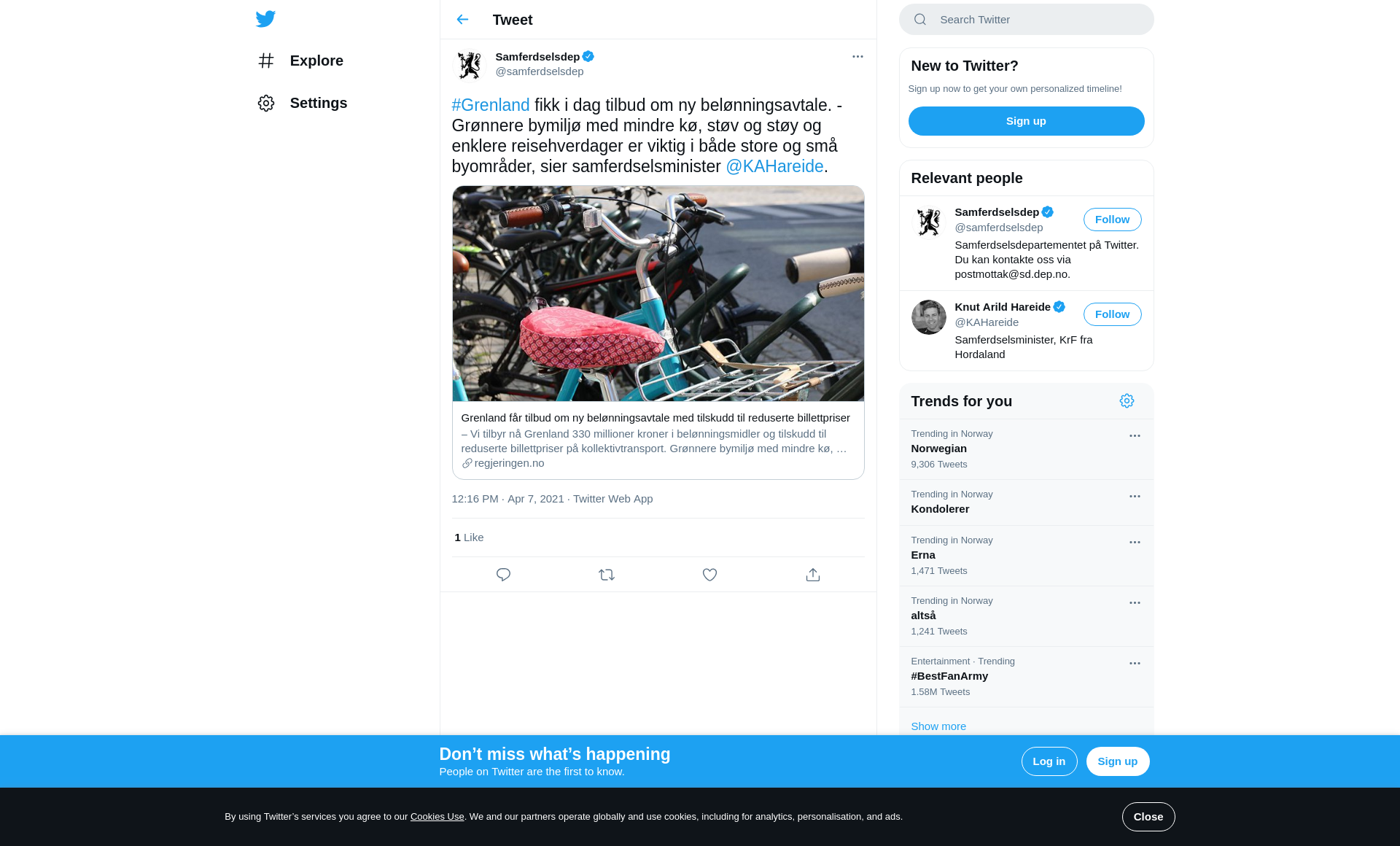 – Vi tilbyr nå Grenland 330 millioner kroner i belønningsmidler og tilskudd til reduserte billettpriser på kollektivtransport. Grønnere bymiljø med mindre kø, støv og støy og enklere reisehverdager er viktig i både store og små byområder, sier samferds...