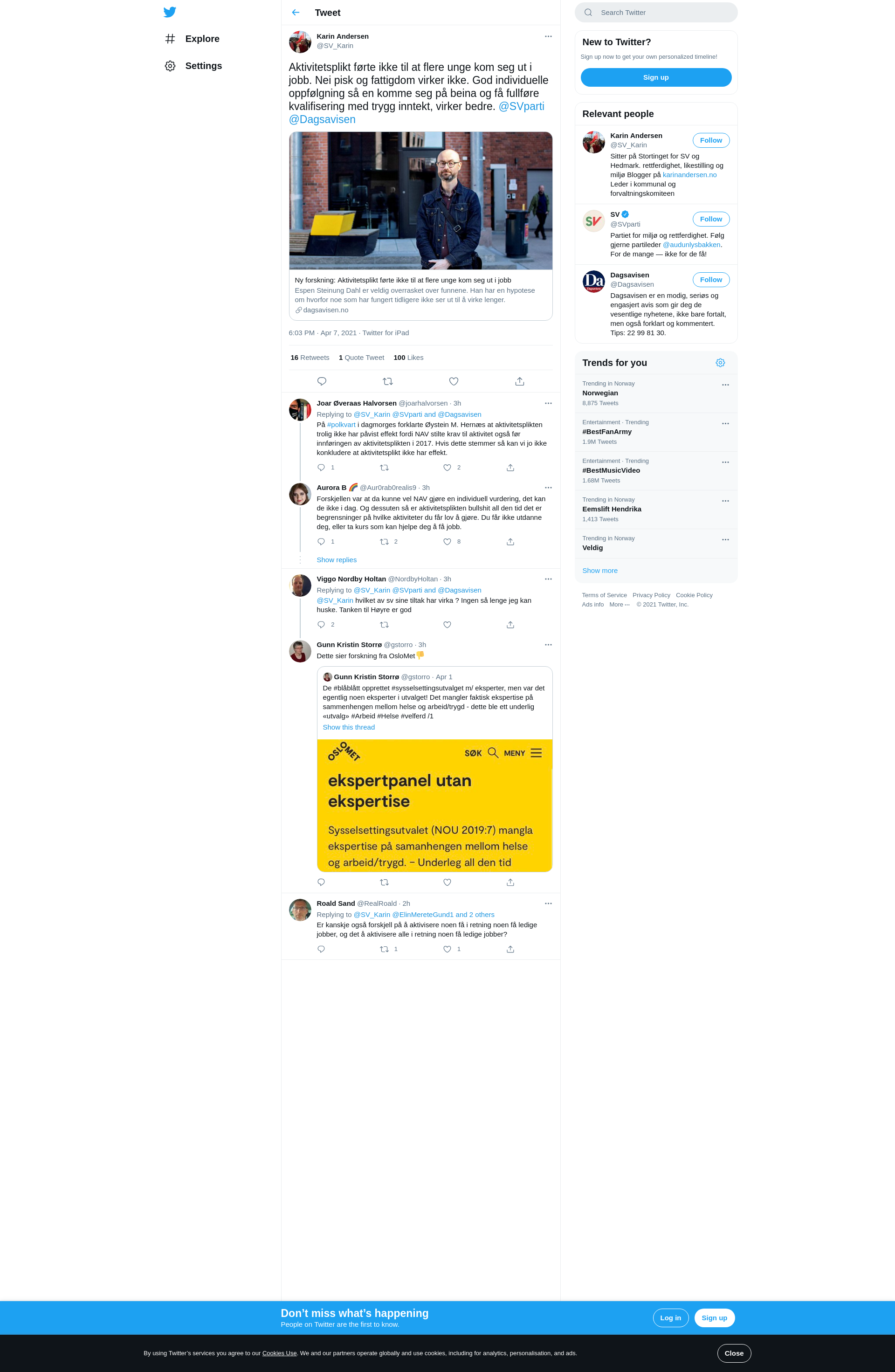 Aktivitetsplikt førte ikke til at flere unge kom seg ut i jobb. Nei pisk og fattigdom virker ikke. God individuelle oppfølgning så en komme seg på beina og få fullføre kvalifisering med trygg inntekt, virker bedre. @SVparti @Dagsavisen https://t.co/5EiL35BqL8