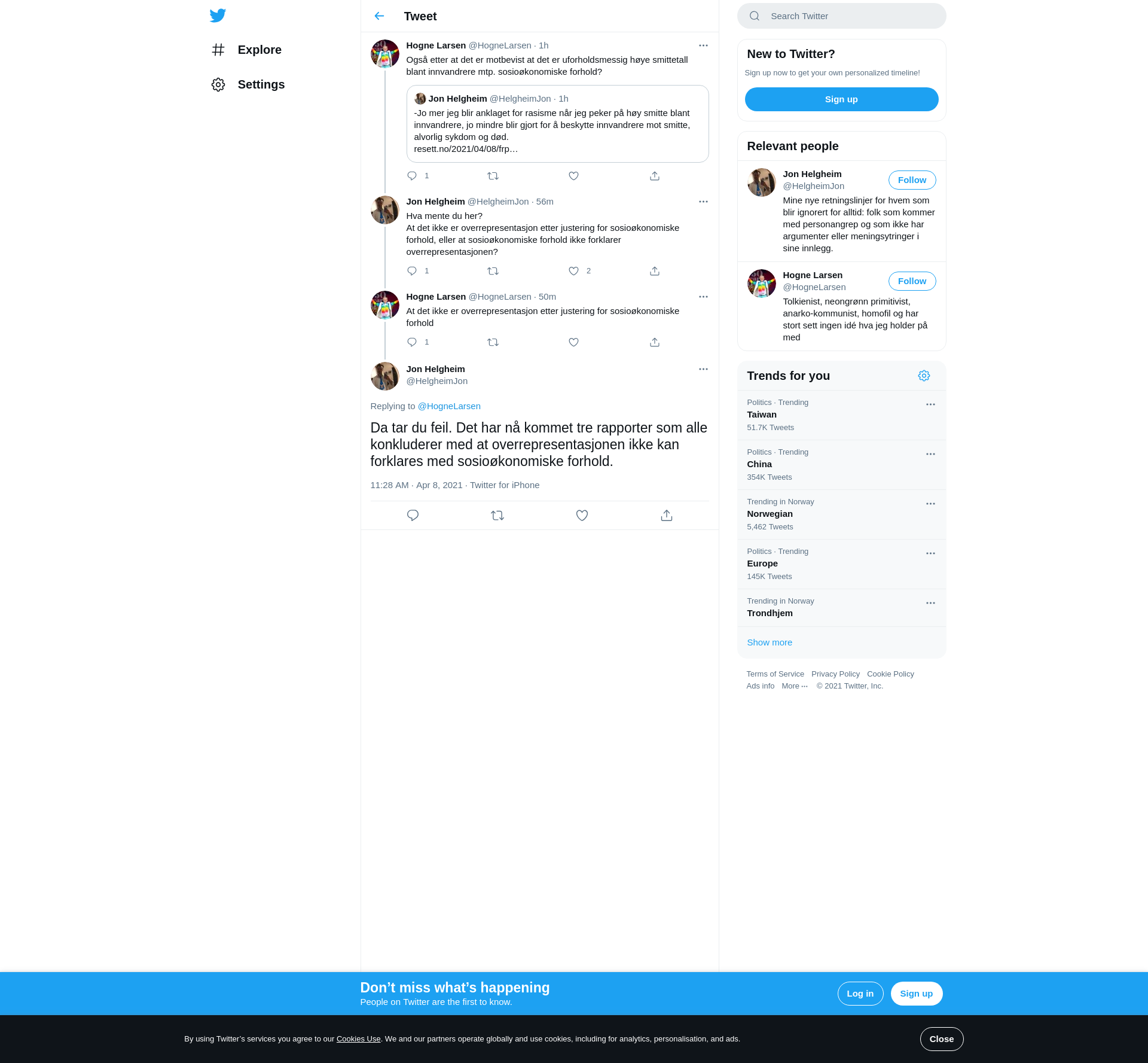 @HogneLarsen Da tar du feil. Det har nå kommet tre rapporter som alle konkluderer med at overrepresentasjonen ikke kan forklares med sosioøkonomiske forhold.
