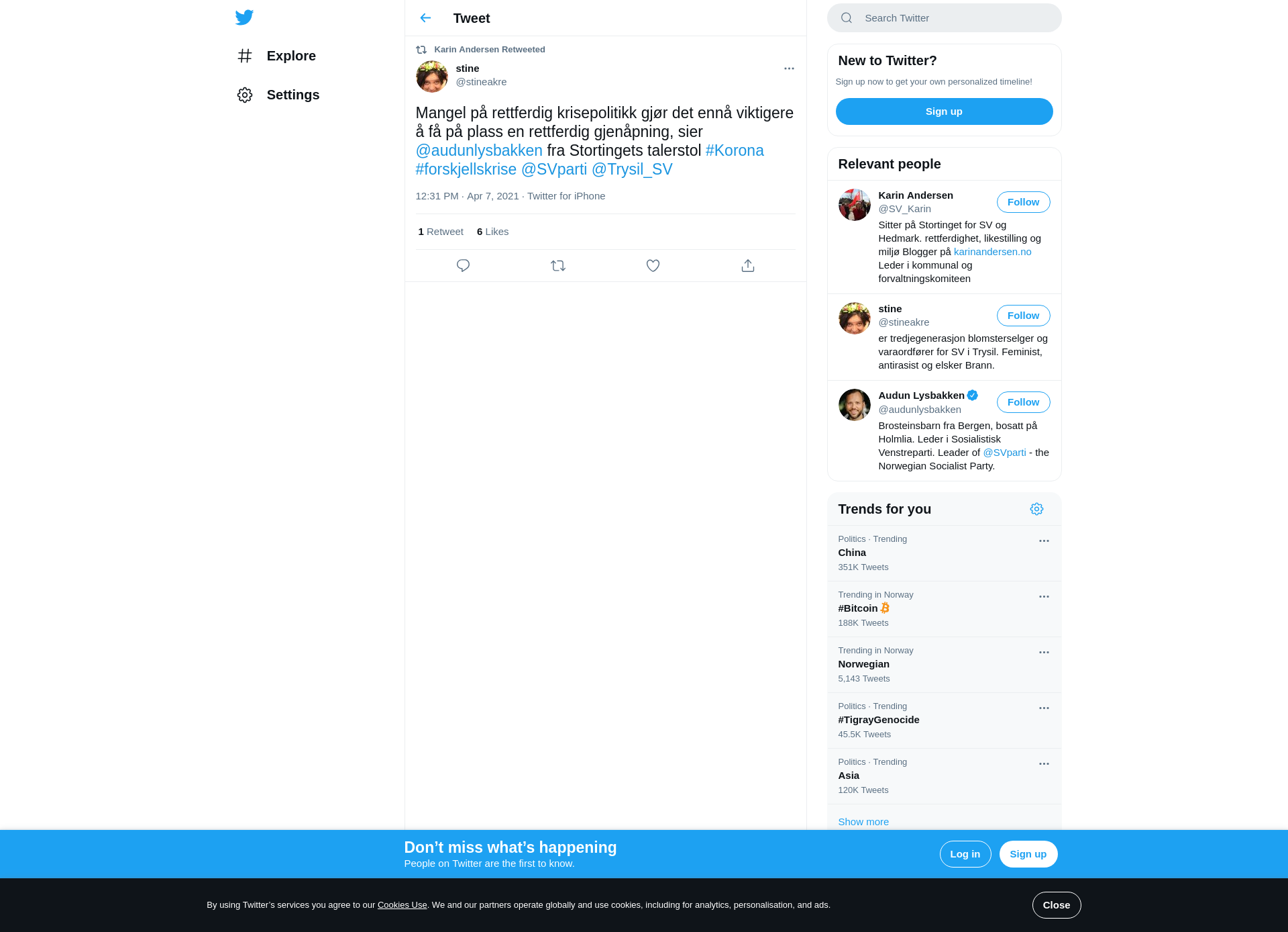 RT @stineakre: Mangel på rettferdig krisepolitikk gjør det ennå viktigere å få på plass en rettferdig gjenåpning, sier @audunlysbakken fra Stortingets talerstol #Korona #forskjellskrise @SVparti @Trysil_SV