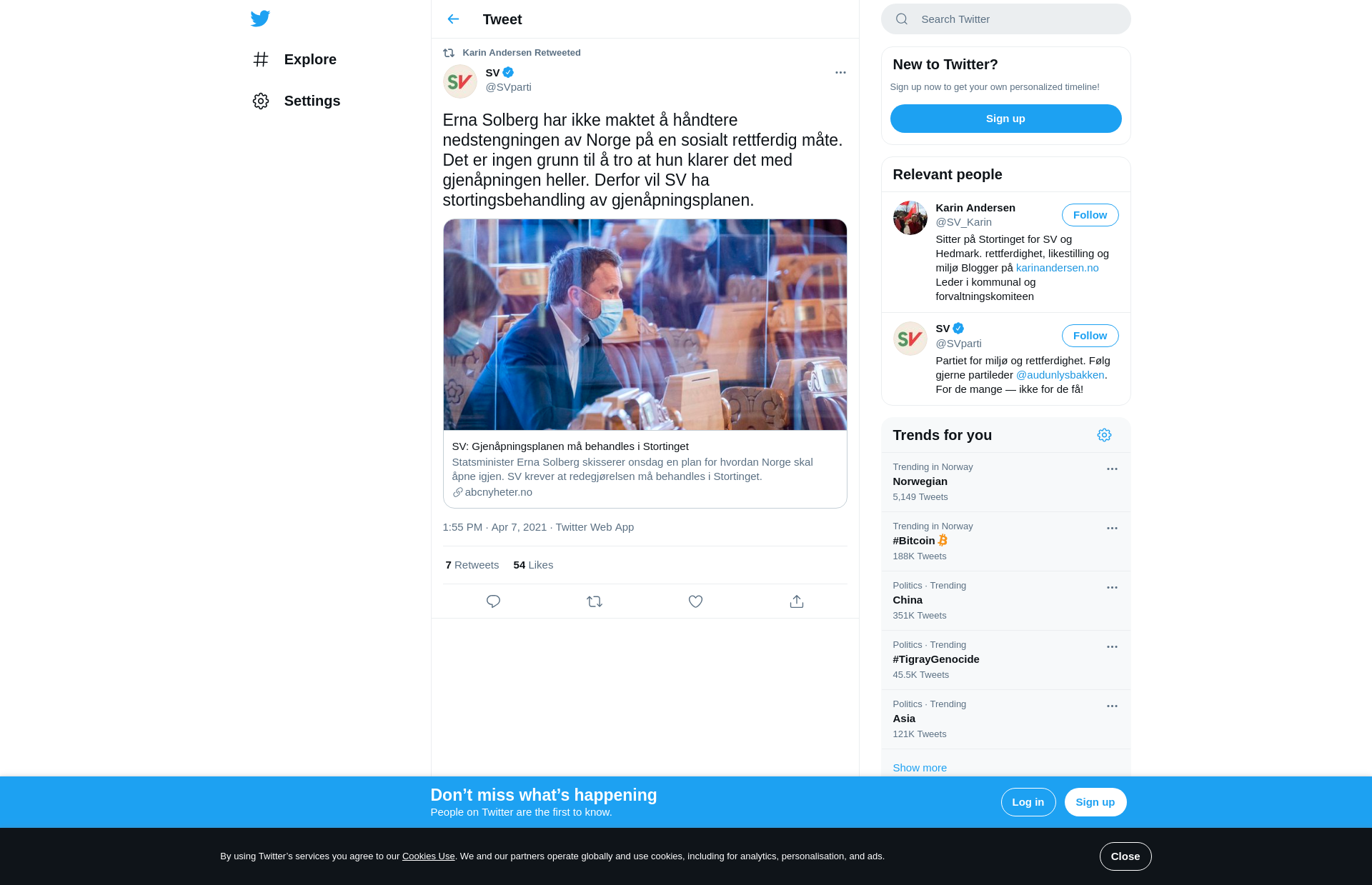 RT @SVparti: Erna Solberg har ikke maktet å håndtere nedstengningen av Norge på en sosialt rettferdig måte. Det er ingen grunn til å tro at hun klarer det med gjenåpningen heller. Derfor vil SV ha stortingsbehandling av gjenåpningsplanen. https://t.co/VnhtTT8qM5