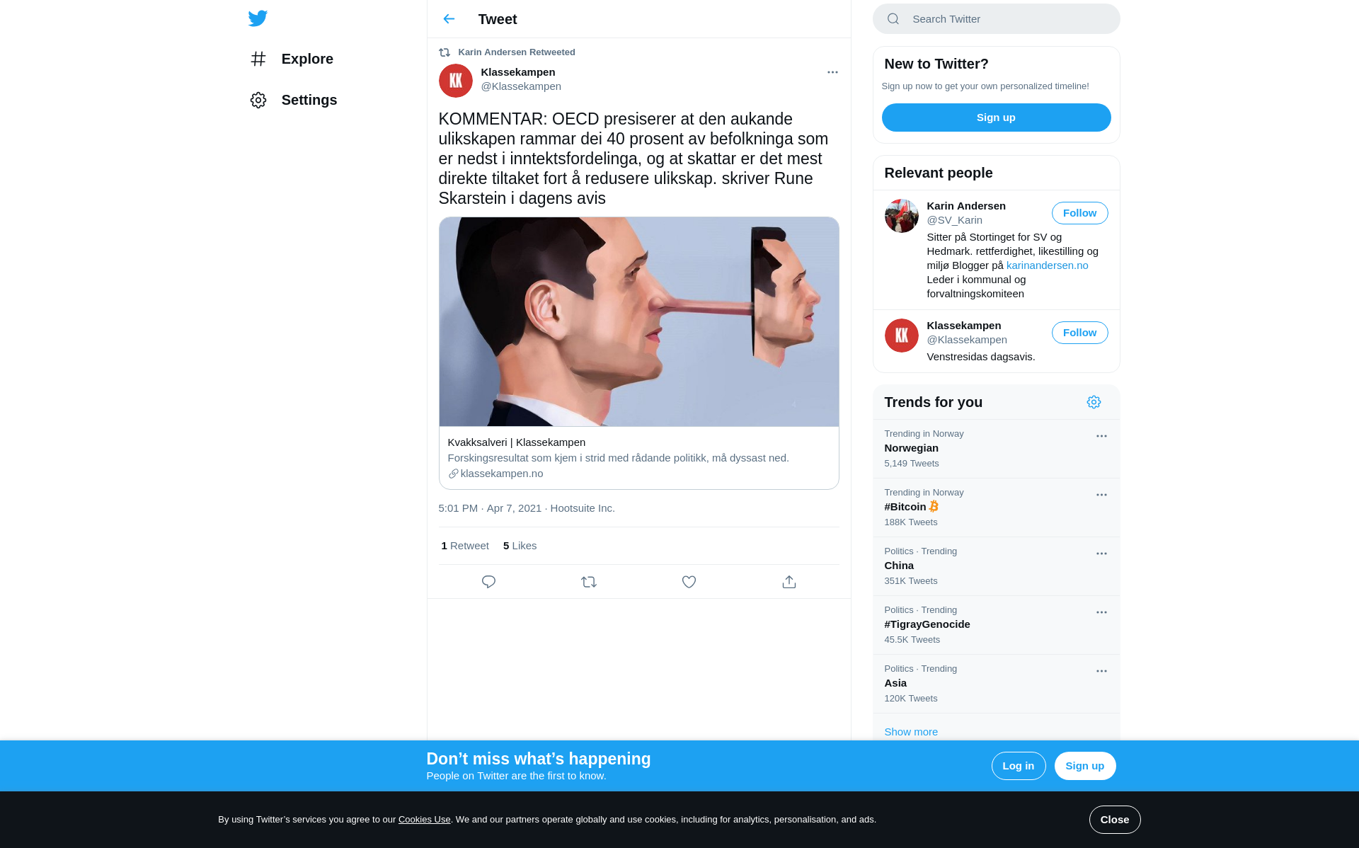 RT @Klassekampen: KOMMENTAR: OECD presiserer at den aukande ulikskapen rammar dei 40 prosent av befolkninga som er nedst i inntektsfordelinga, og at skattar er det mest direkte tiltaket fort å redusere ulikskap. skriver Rune Skarstein i dagens avis https://t.co/N7vb1FYxQY
