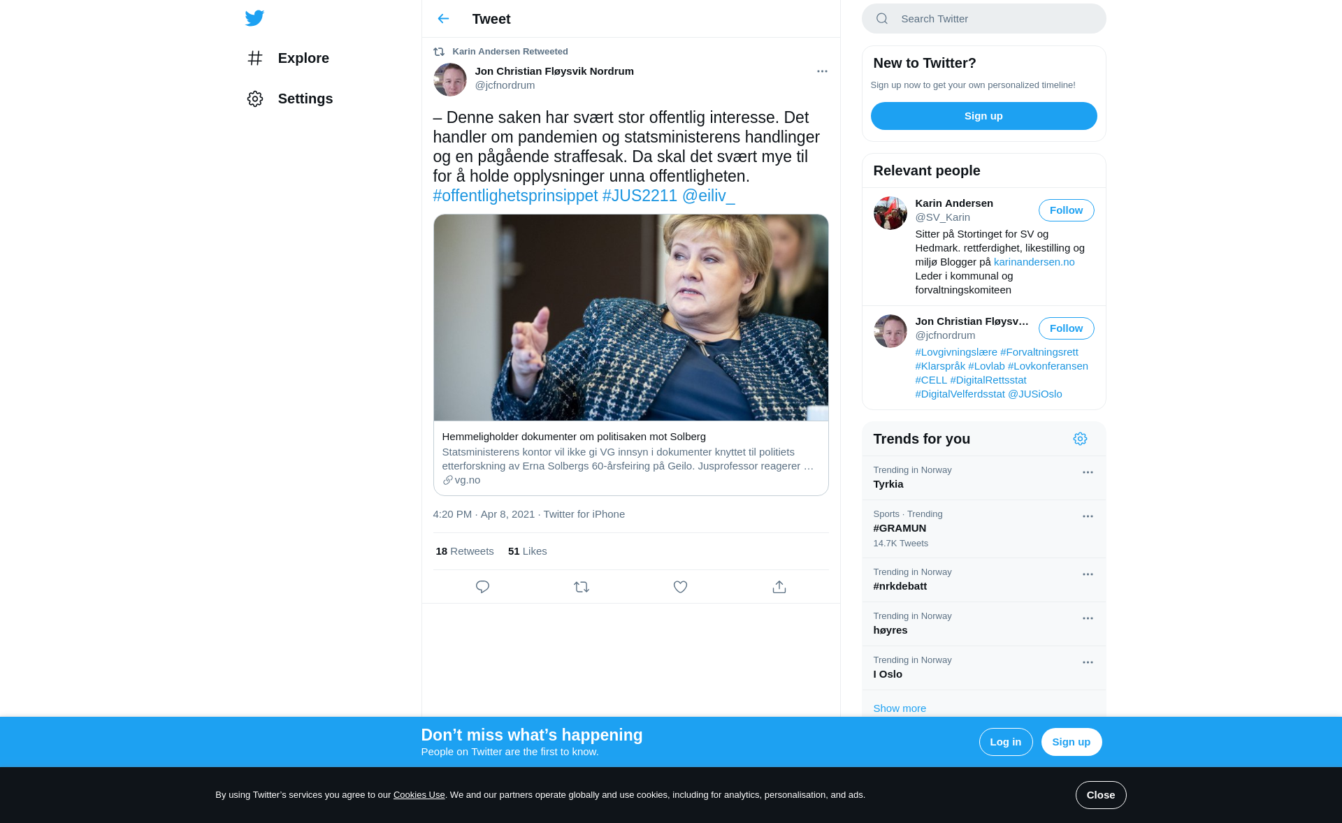 RT @jcfnordrum: – Denne saken har svært stor offentlig interesse. Det handler om pandemien og statsministerens handlinger og en pågående straffesak. Da skal det svært mye til for å holde opplysninger unna offentligheten. #offentlighetsprinsippet #JUS2211 @eiliv_ https://t.co/fAMmcPPGdH