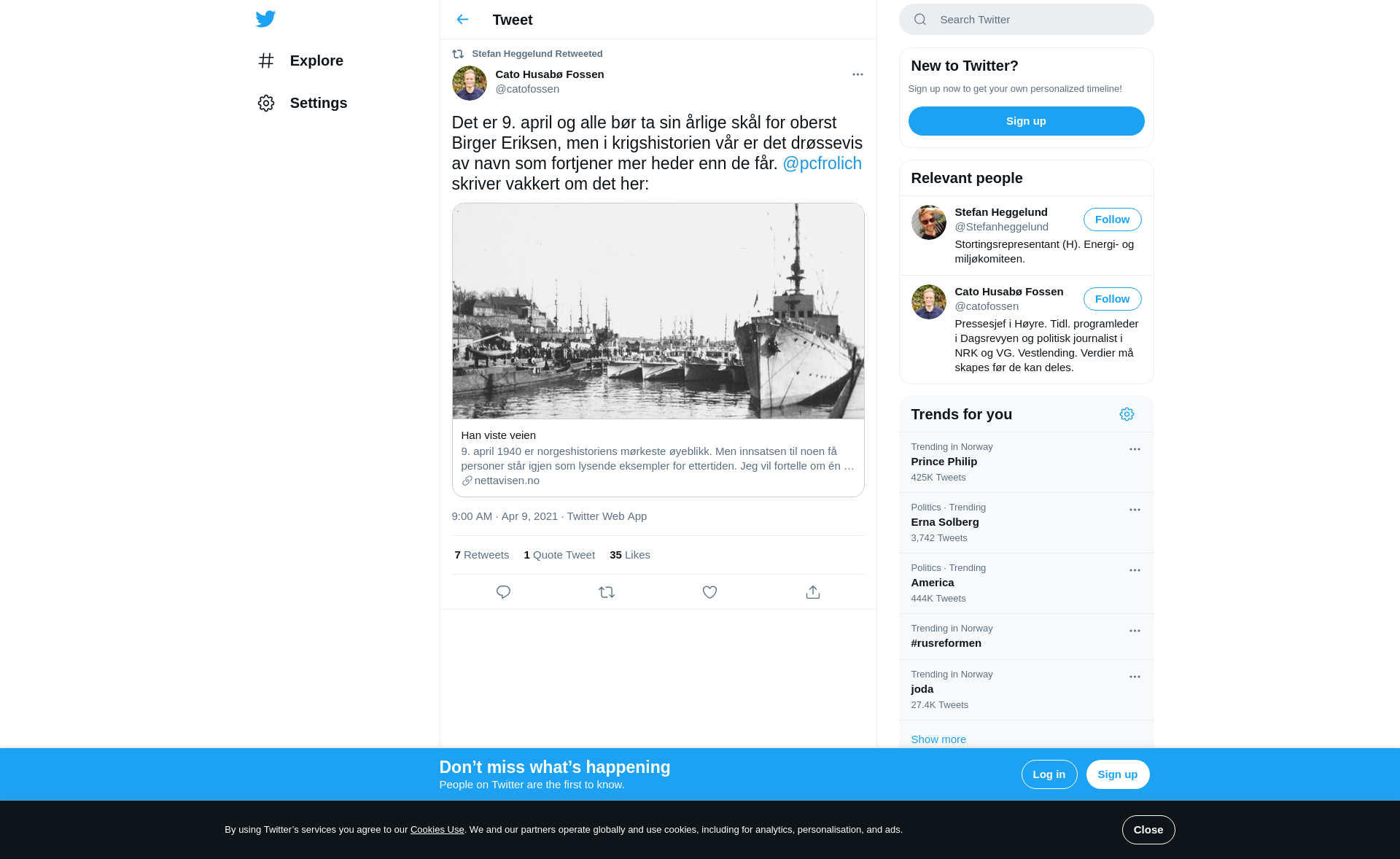 RT @catofossen: Det er 9. april og alle bør ta sin årlige skål for oberst Birger Eriksen, men i krigshistorien vår er det drøssevis av navn som fortjener mer heder enn de får. @pcfrolich skriver vakkert om det her: https://t.co/S5oaZDzoZe
