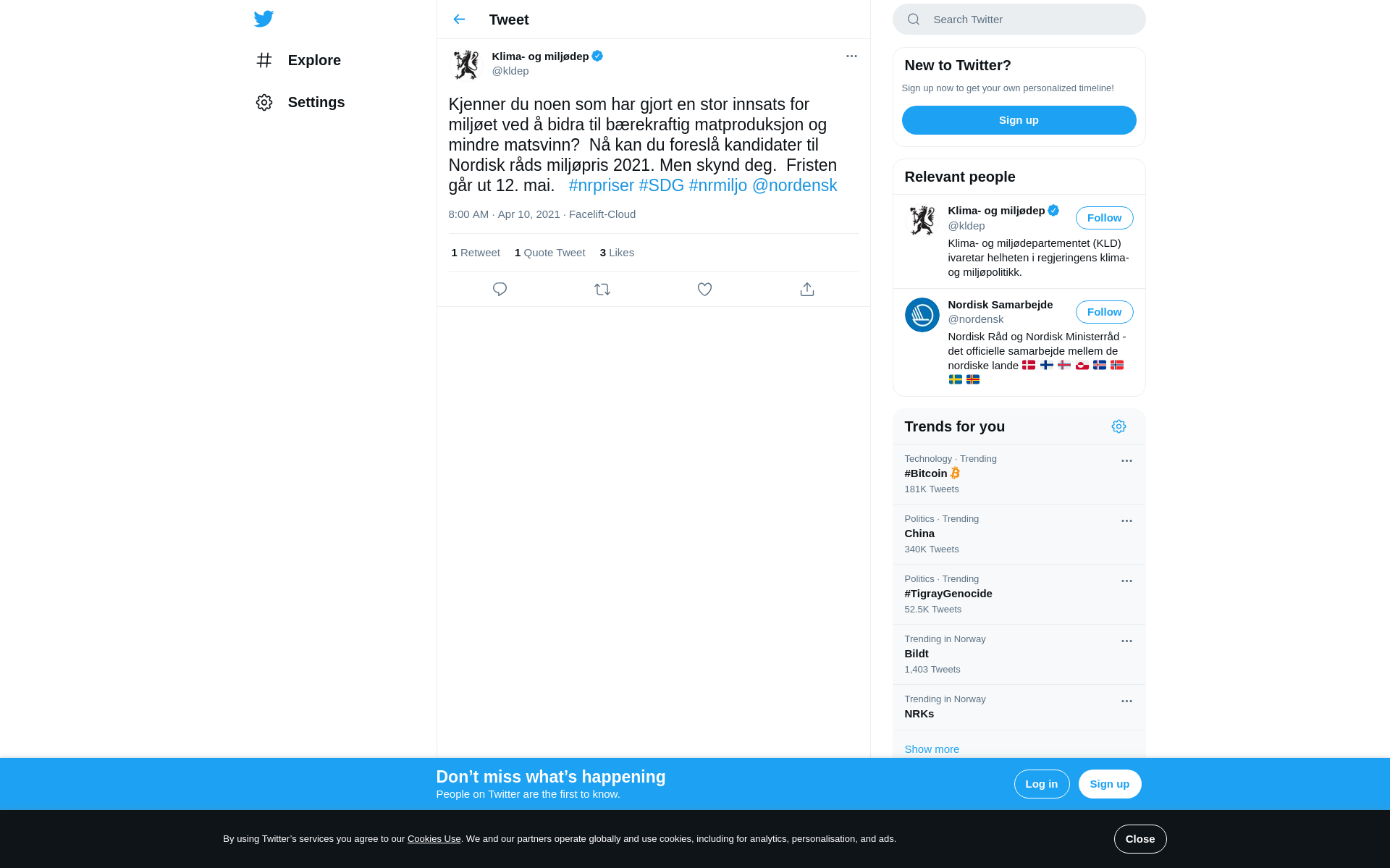 Kjenner du noen som har gjort en stor innsats for miljøet ved å bidra til bærekraftig matproduksjon og mindre matsvinn? Nå kan du foreslå kandidater til Nordisk råds miljøpris 2021. Men skynd deg. Fristen går ut 12. mai. #nrpriser #SDG #nrmiljo @nordensk