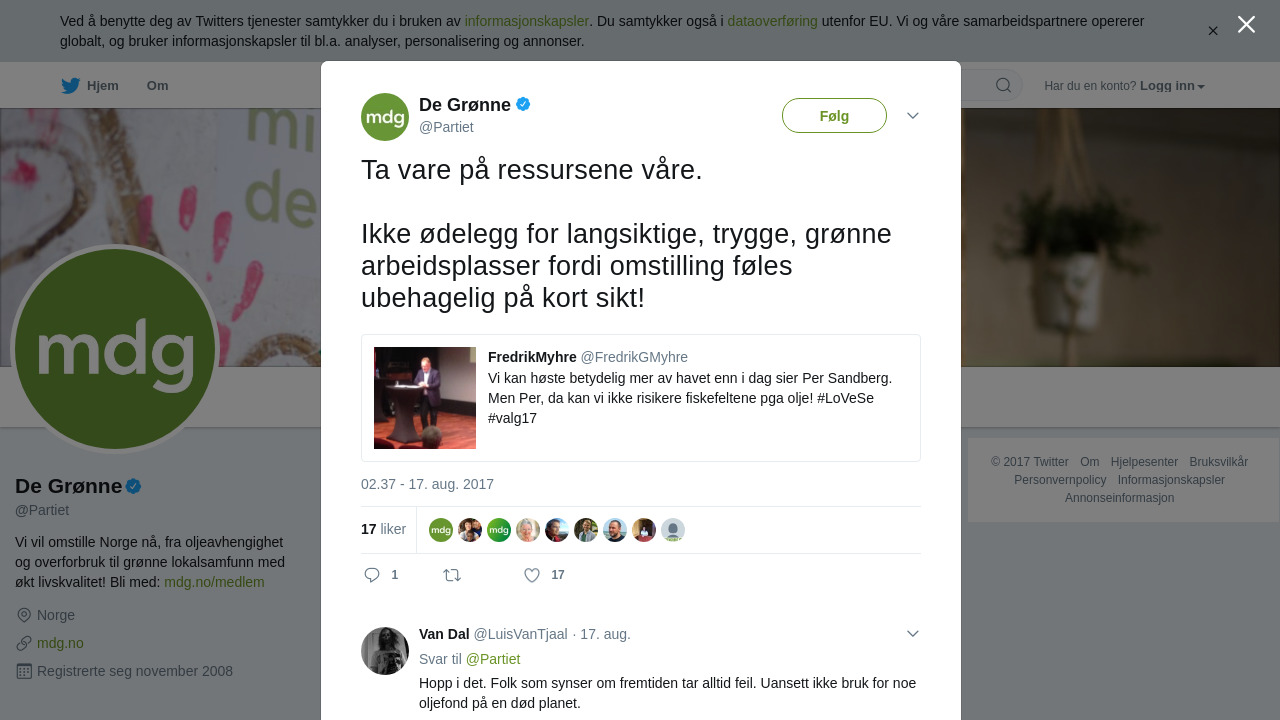 “Vi kan høste betydelig mer av havet enn i dag sier Per Sandberg. Men Per, da kan vi ikke risikere fiskefeltene pga olje! #LoVeSe #valg17”