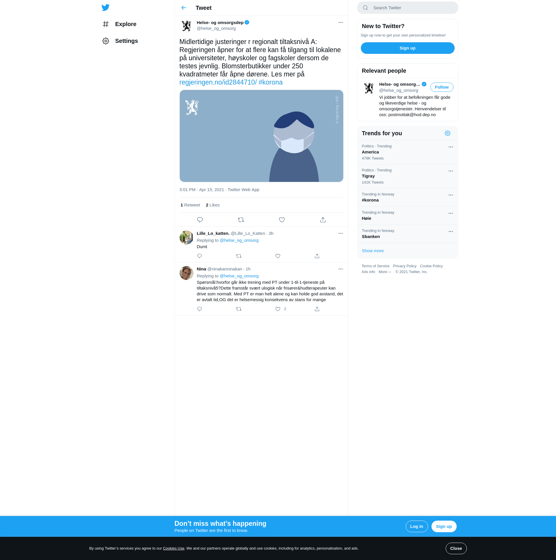 Midlertidige justeringer r regionalt tiltaksnivå A: Regjeringen åpner for at flere kan få tilgang til lokalene på universiteter, høyskoler og fagskoler dersom de testes jevnlig. Blomsterbutikker under 250 kvadratmeter får åpne dørene. Les mer på https://t.co/Pos9WF3VKZ #korona https://t.co/5IsTcmXMaB