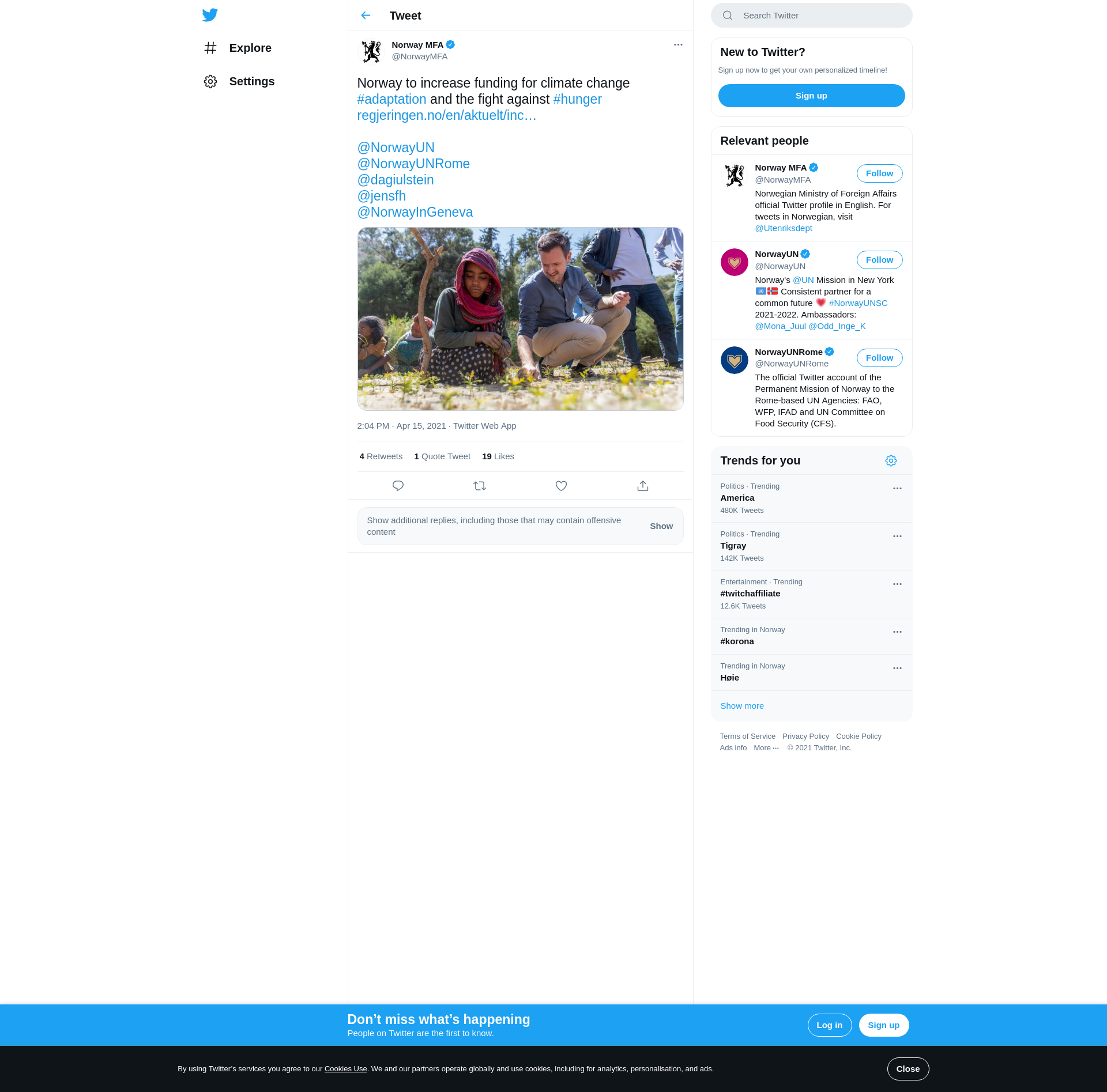 Norwegian Government to increase funding for climate change adaptation and the fight against hunger